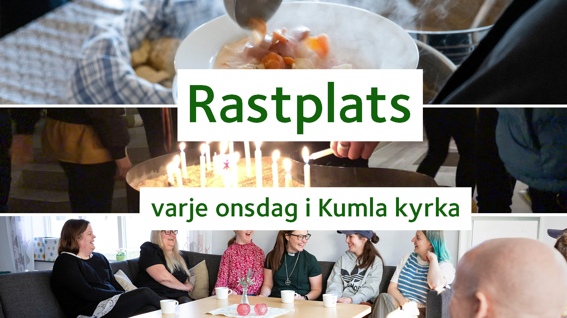 Mellan kl. 17.00-17.45 serverar vi en enkel soppa med bröd. Gemenskap kring borden står i fokus. Här får du landa efter en dag som kan ha varit full med allt möjligt. Ett tillfälle att äta tillsammans, bli sedd och känna värme och gemenskap.