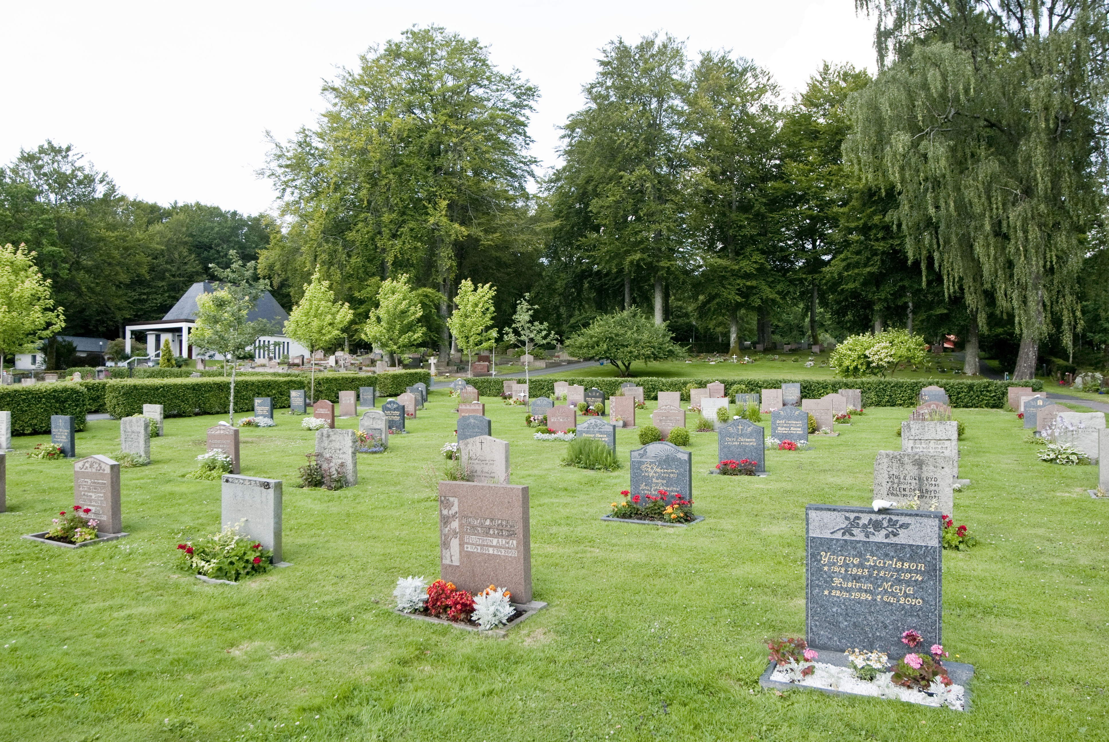 Skogskyrkogården anlades på 1930-talet och är vackert belägen i utkanten av Kungsbackaskogen.