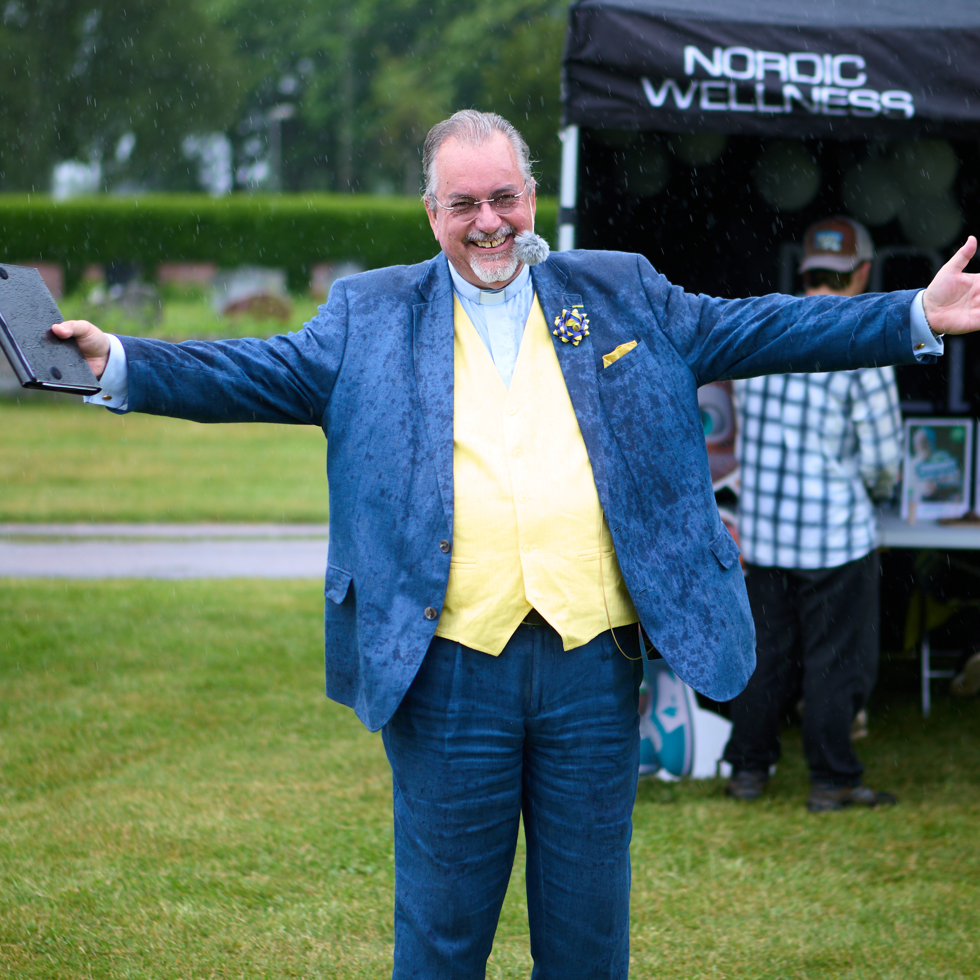 Men vi svenskar är ett tåligt folk, inte minst när det gäller vädret och det märktes igår. För trots det ymniga regnandet var det ett antal församlingsbor som tog sig till strandängen för att fira nationaldagen.