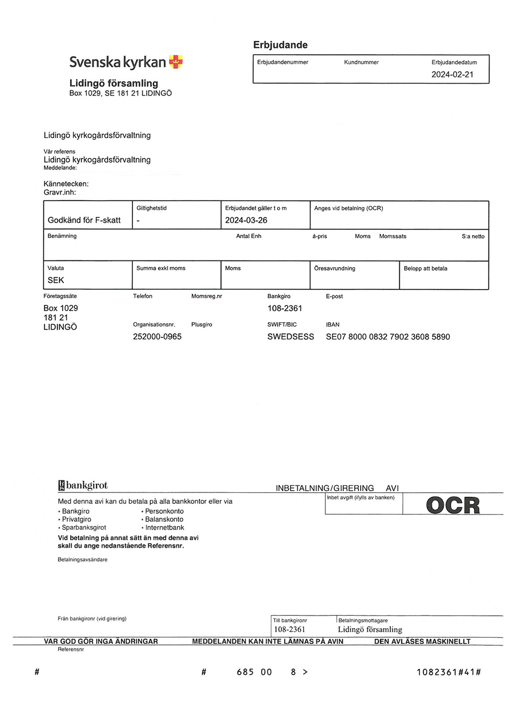 Observera att det finns oseriösa aktörer som skickar ut fakturaliknande ”erbjudanden” kring gravskötsel – var uppmärksam på avsändare och bankgironummer.