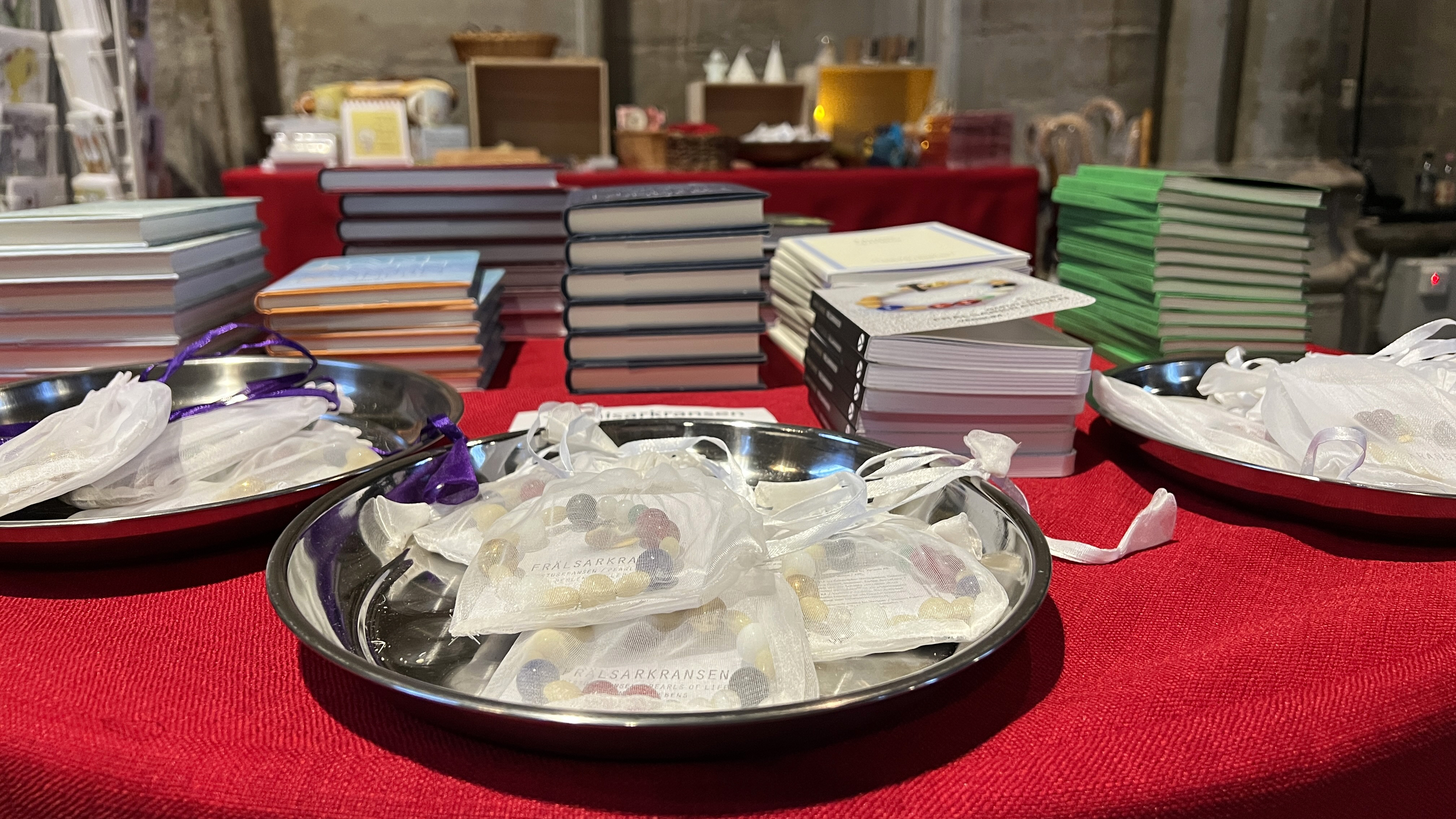 Böcker: Biblar, psalmböcker och bönböcker inklusive Martin Lönnebos böcker om Frälsarkransen. I bokbordet hittar du dessutom en stor mängd pocketböcker samt annan god litteratur.