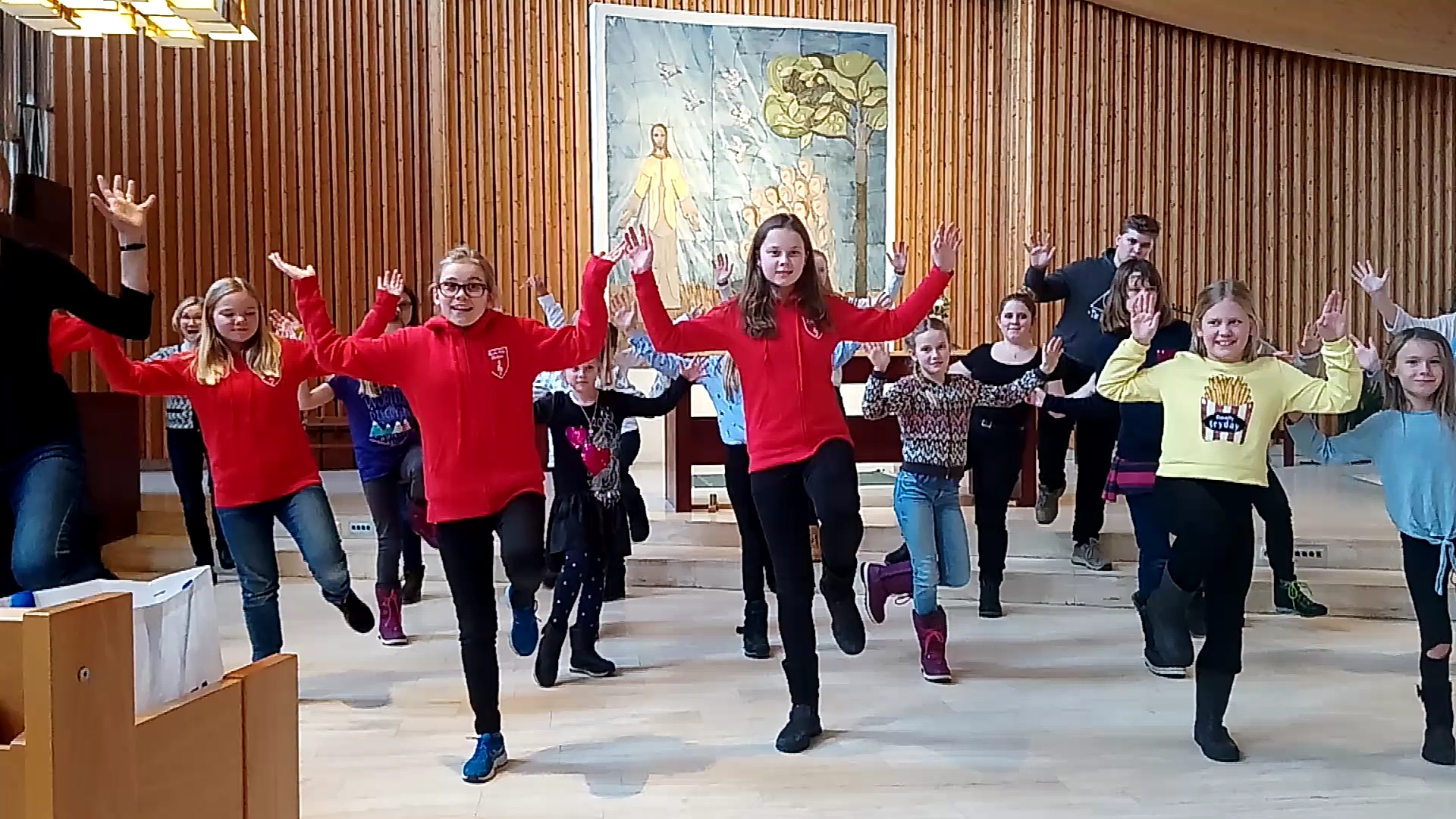 Den 3 februari var det dags att lära sig de nya sångerna och hitta rörelser tillsammans. Vi sjöng också redan utgivet material som man övat på hemma i kören. 50 sångare från sex församlingar var anmälda.