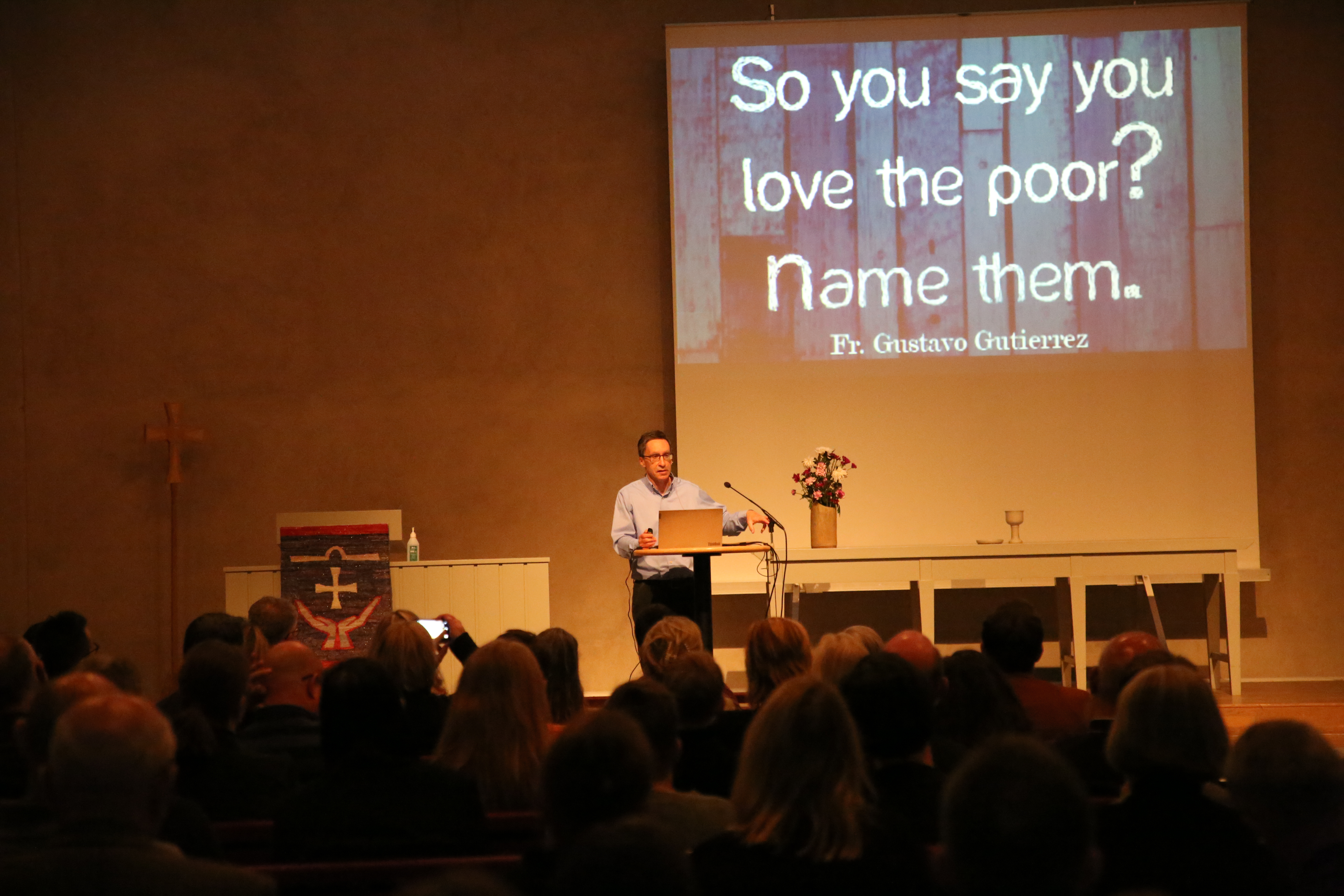 Dagens föreläsare professor William Cavanaughs huvudsakliga forskningsområden handlar om kyrkans möte med sociala, politiska och ekonomiska realiteter.