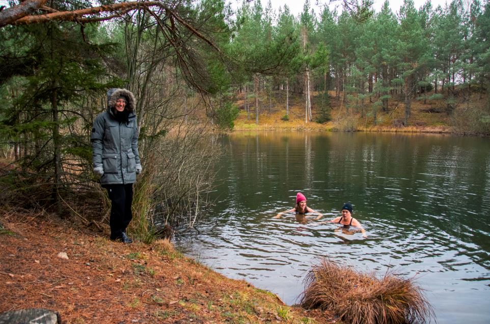 Min kollega Liselott Anderson och jag brukar vinterbada. Vi är övertygade om att det är stärkande och bra för immunförsvaret. Dessutom ger det en härlig endorfinskjuts i hela kroppen och glitter i ögonen! Övriga i arbetslaget i församlingen tycker att vi är lite knäppa, och framförallt kyrkoherde Linda, hon tycker att vi är helgalna. Hon badar inte ens på sommaren och har om sanningen ska fram inte badat i en sjö på två år.