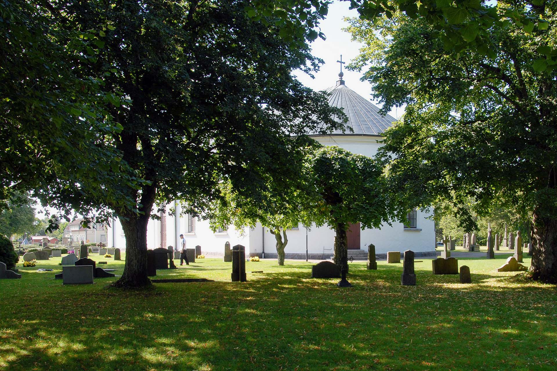 De utvidgningar av kyrkogården som gjorts syns tydligt i stenmuren. Muren har olika utseende beroende på vilken del av kyrkogården den hör till. Den ursprungliga delen av nya kyrkogården följer kyrkans form med rundade kvarter i anslutning till koret. På äldre foton, och enligt muntliga uppgifter, var gravplatserna under en tidsperiod omgärdade av låga häckar eller stenramar och ytan var täckt med grus.