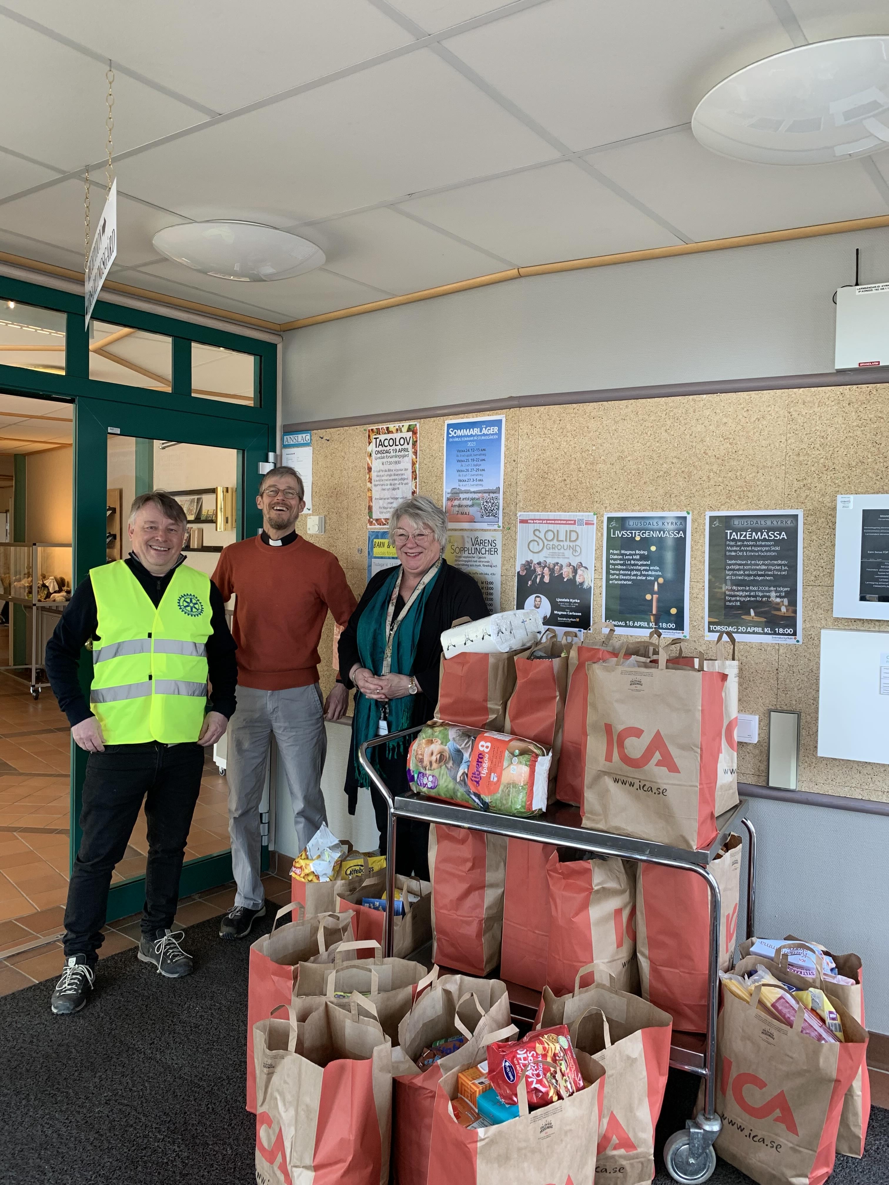 Ljusnans pastorat har hittills i år kunnat dela ut cirka 80 matkassar till behövande familjer. Det har varit möjligt med hjälp av insamlade dagligvaror och pengar från Järvsö Rotary, Odd Fellow och Rebeckalogen Ljusdal.