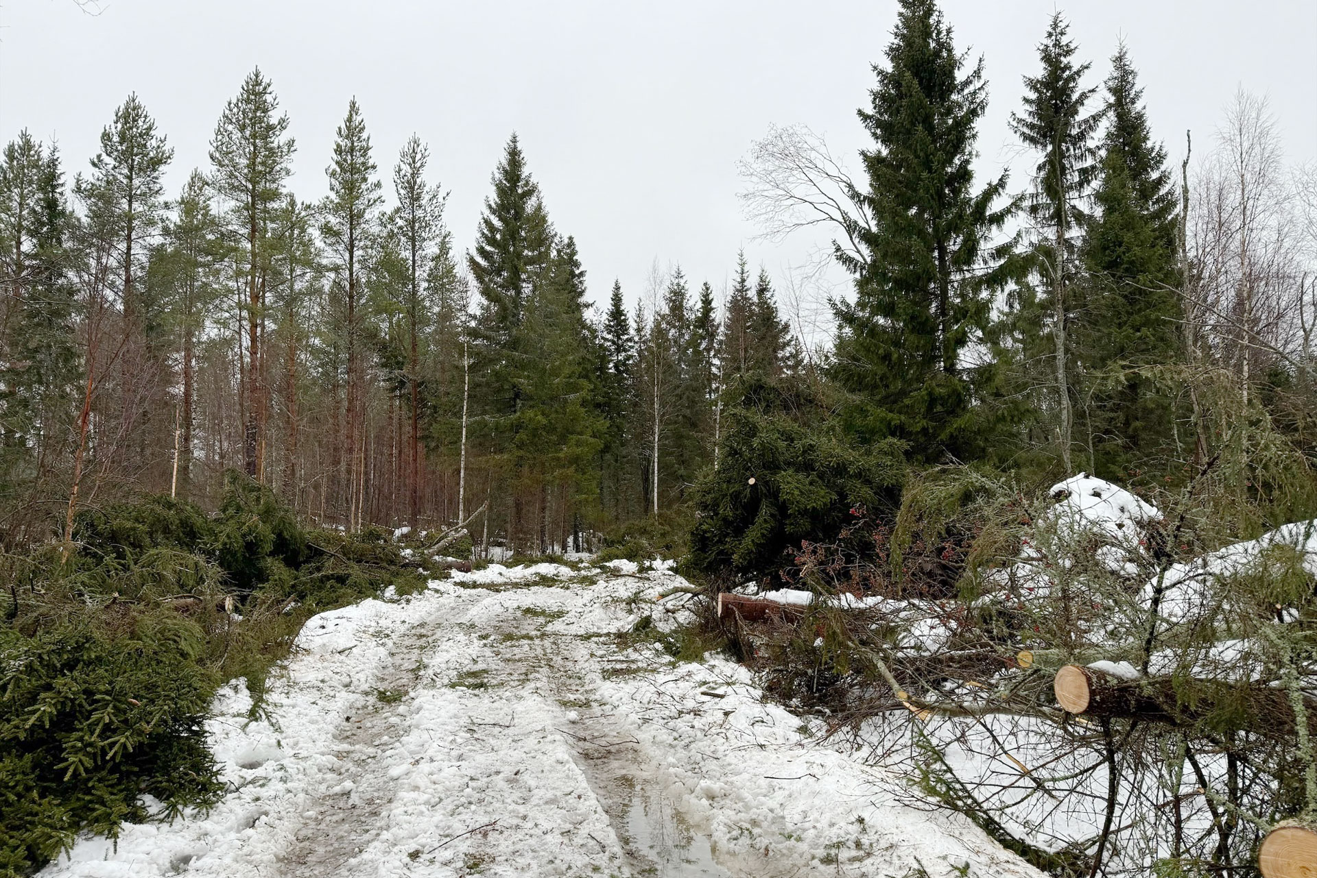 Nu pågår arbetet först och främst med att öppna upp vägar så att det går att ta sig fram. Träd har fallit över både vägar och kraftledningar. Stiftsskogvaktarna finns med i arbetet att göra vägarna farbara igen. Därefter börjar arbetet med att inventera skadorna och planera för att ta hand om stormvirket.