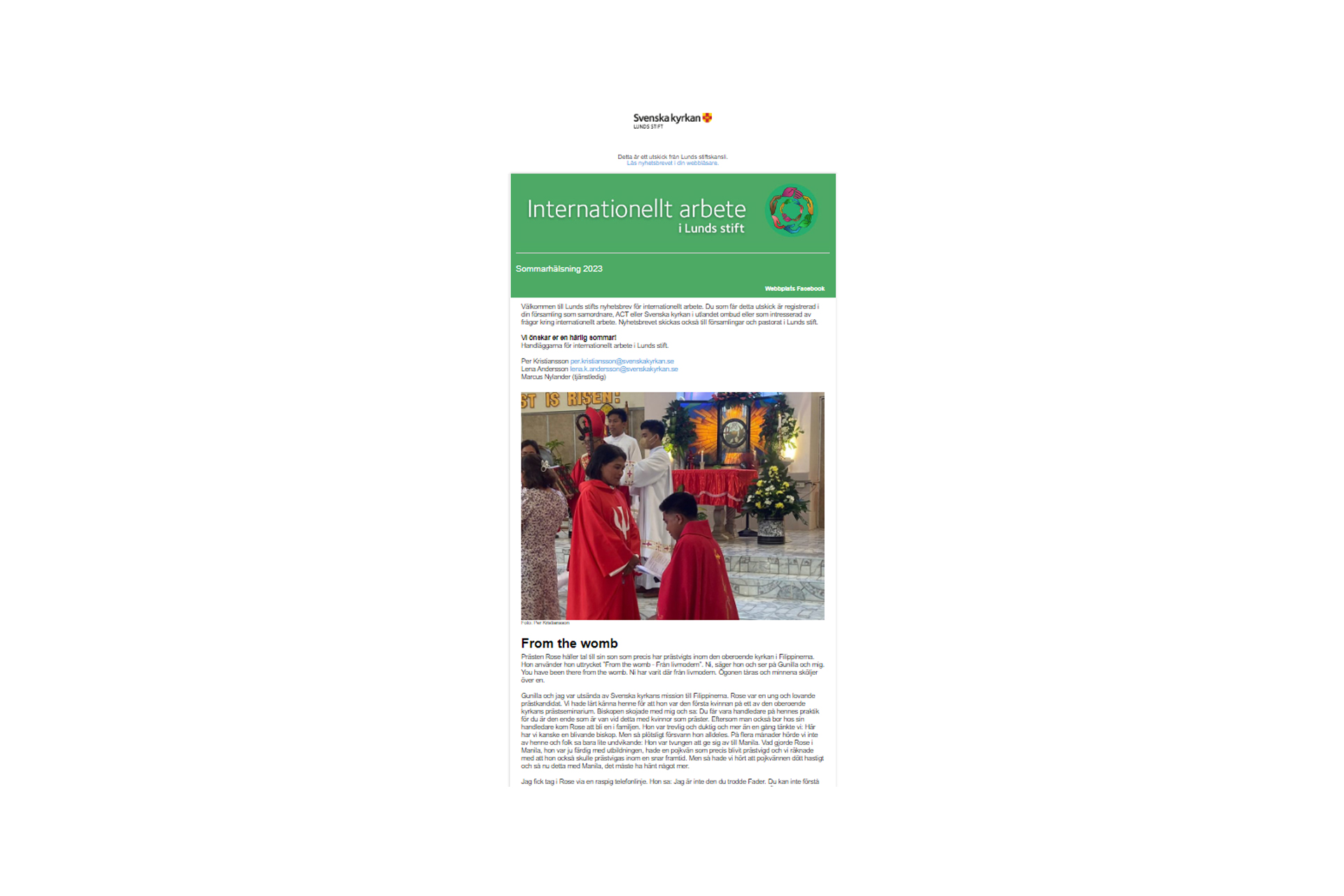 Här kan du läsa tidigare utgåvor av nyhetsbrevet Internationellt arbete i Lunds stift.