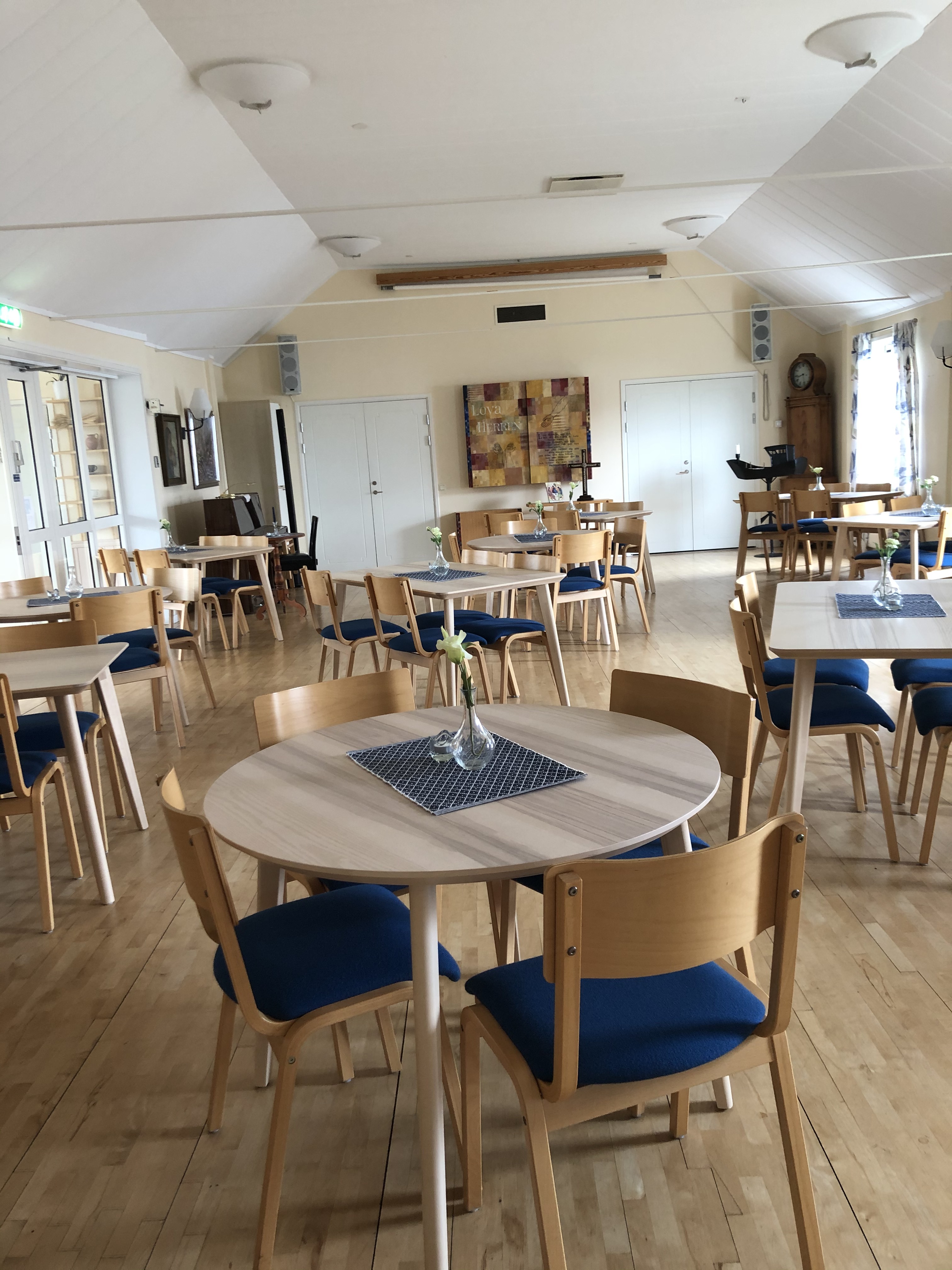 Församlingshemmet lämpar sig väl, med sina öppna ytor och vackra läge, för större samlingar.