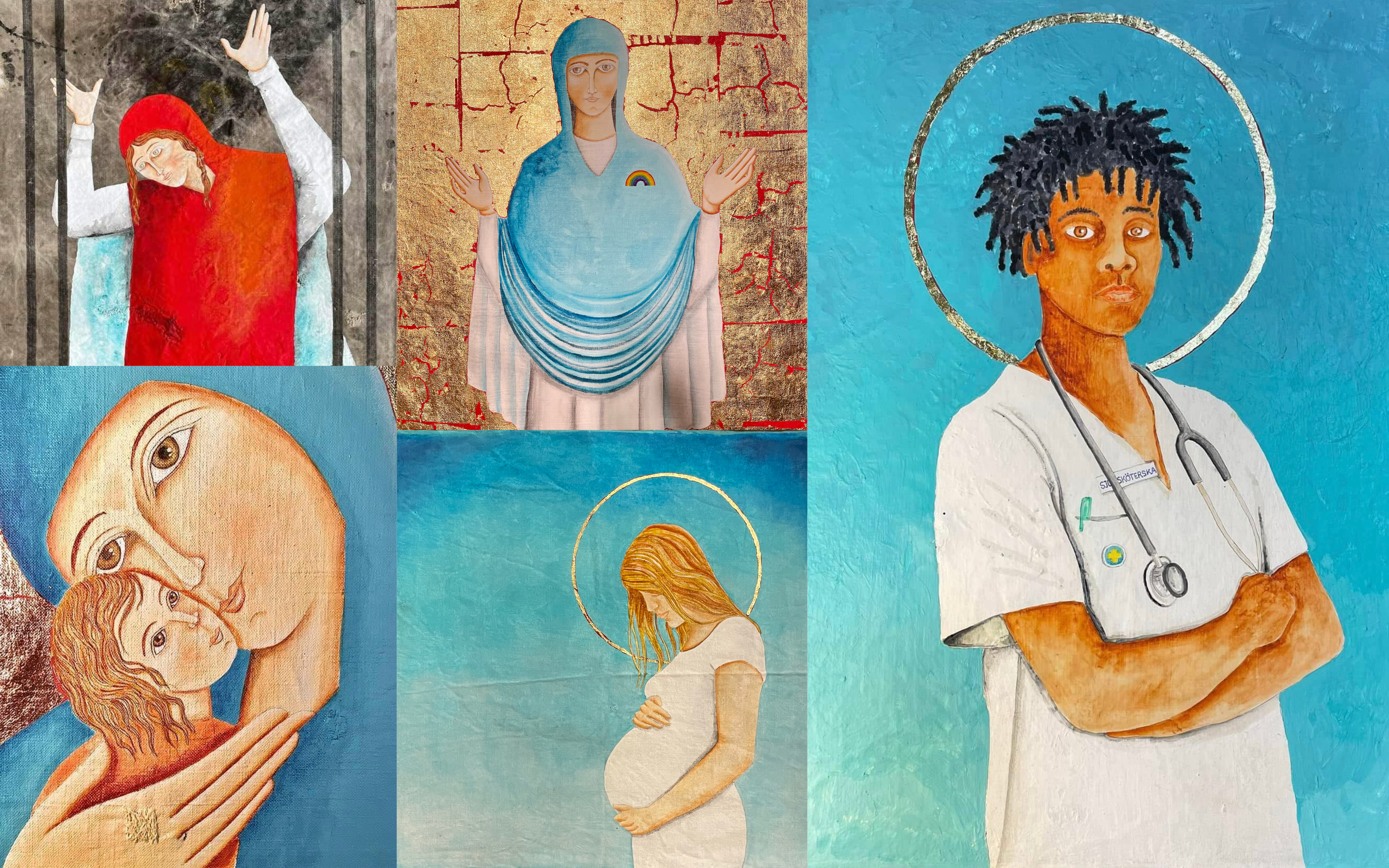 Med kvinnobilder målade på gamla slitna presenningar vill konstnären och prästen Mats Hermansson bidra till en bättre balans mellan manliga och kvinnliga bilder i kyrkorummet.