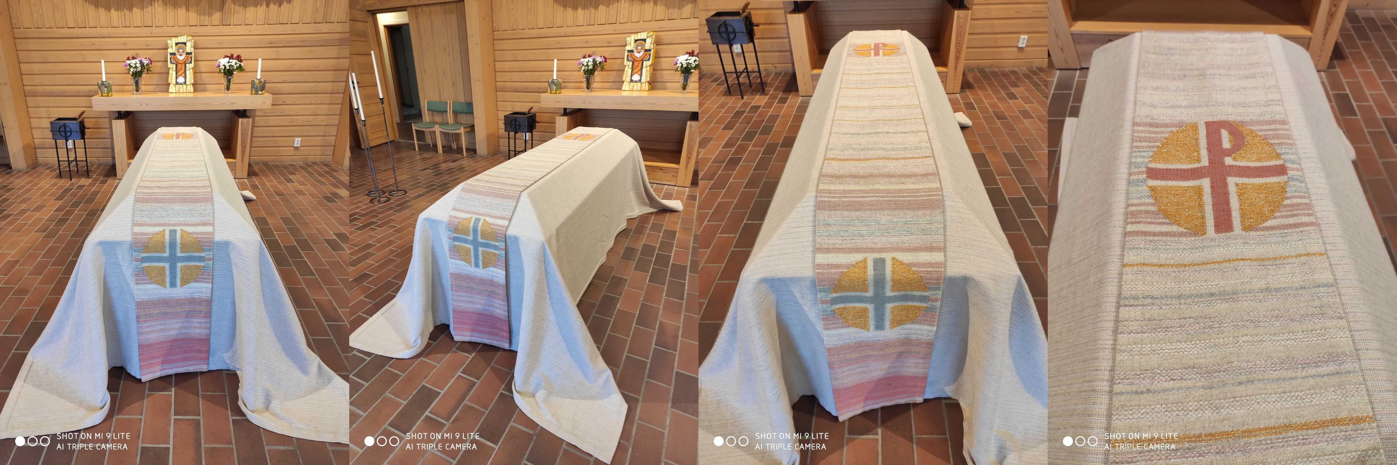 Det finns tre olika bårtäcken att låna till ceremonin. För bilder, se nedan.