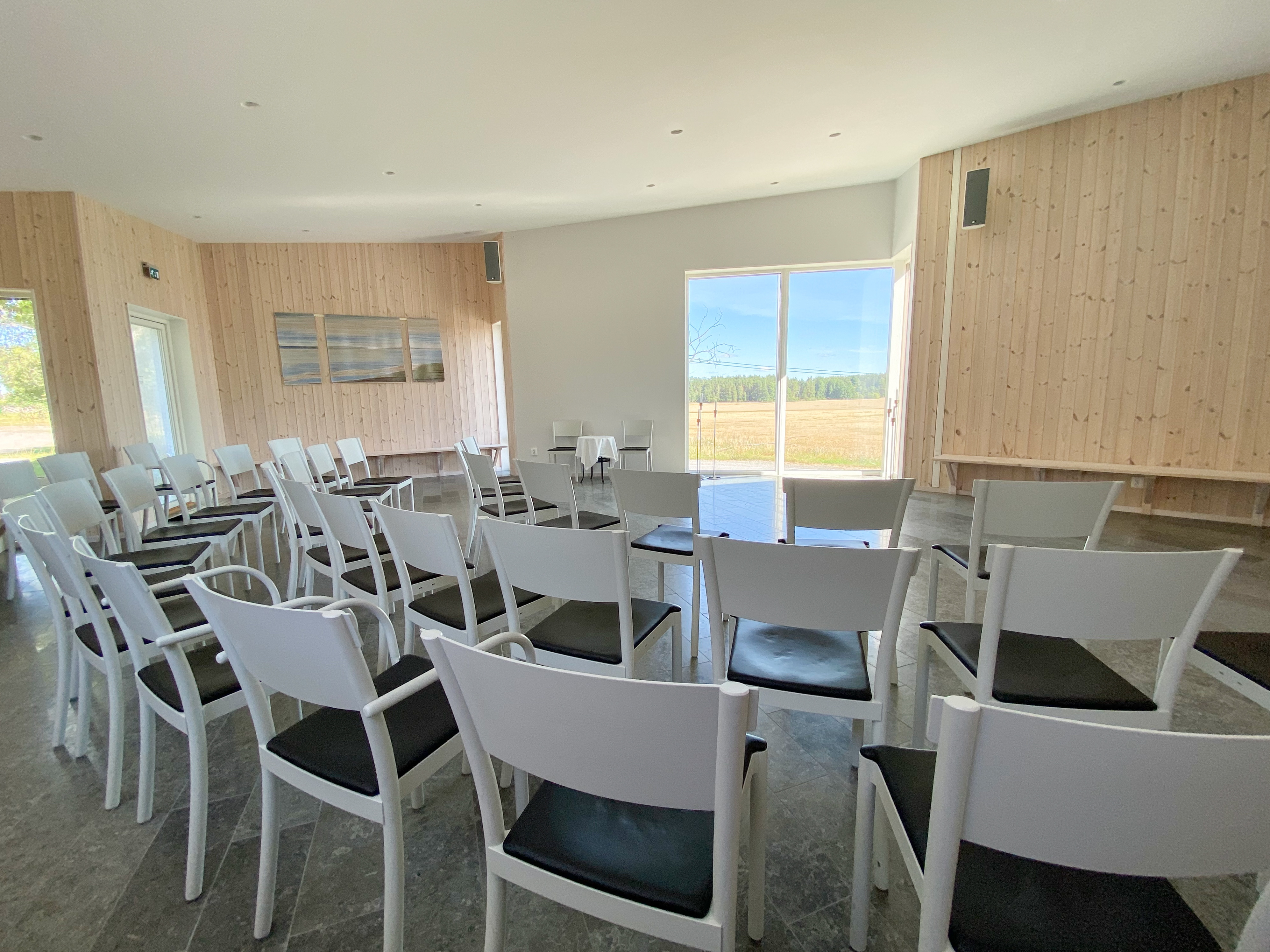 Ceremonilokalen har plats för cirka 50 sittande. Lokalen finns i anslutning till församlingshemmet som kan bokas för samling.