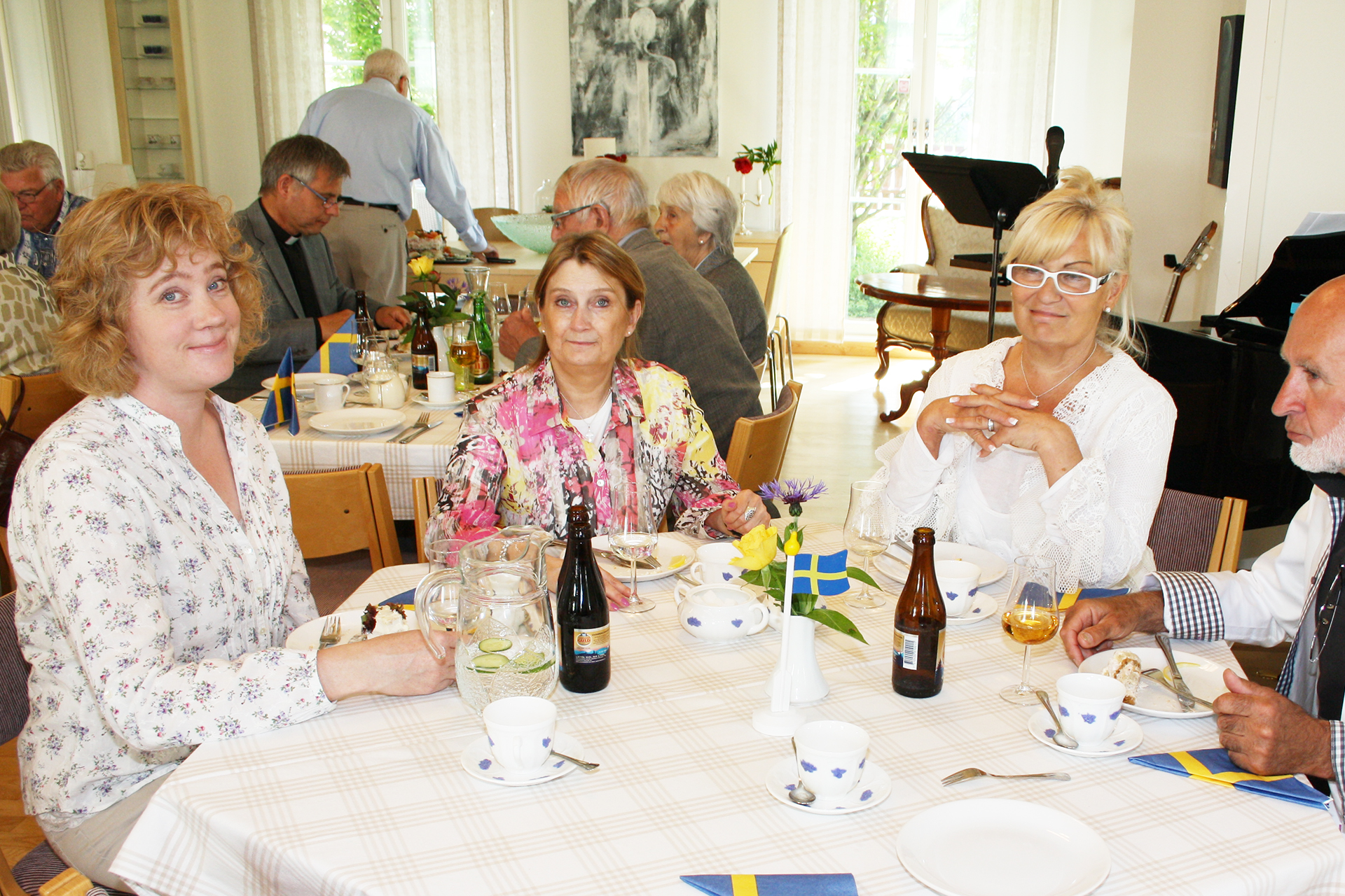 Odensala församlingshem kan dukas för 50 personer. Piano. Toalett.