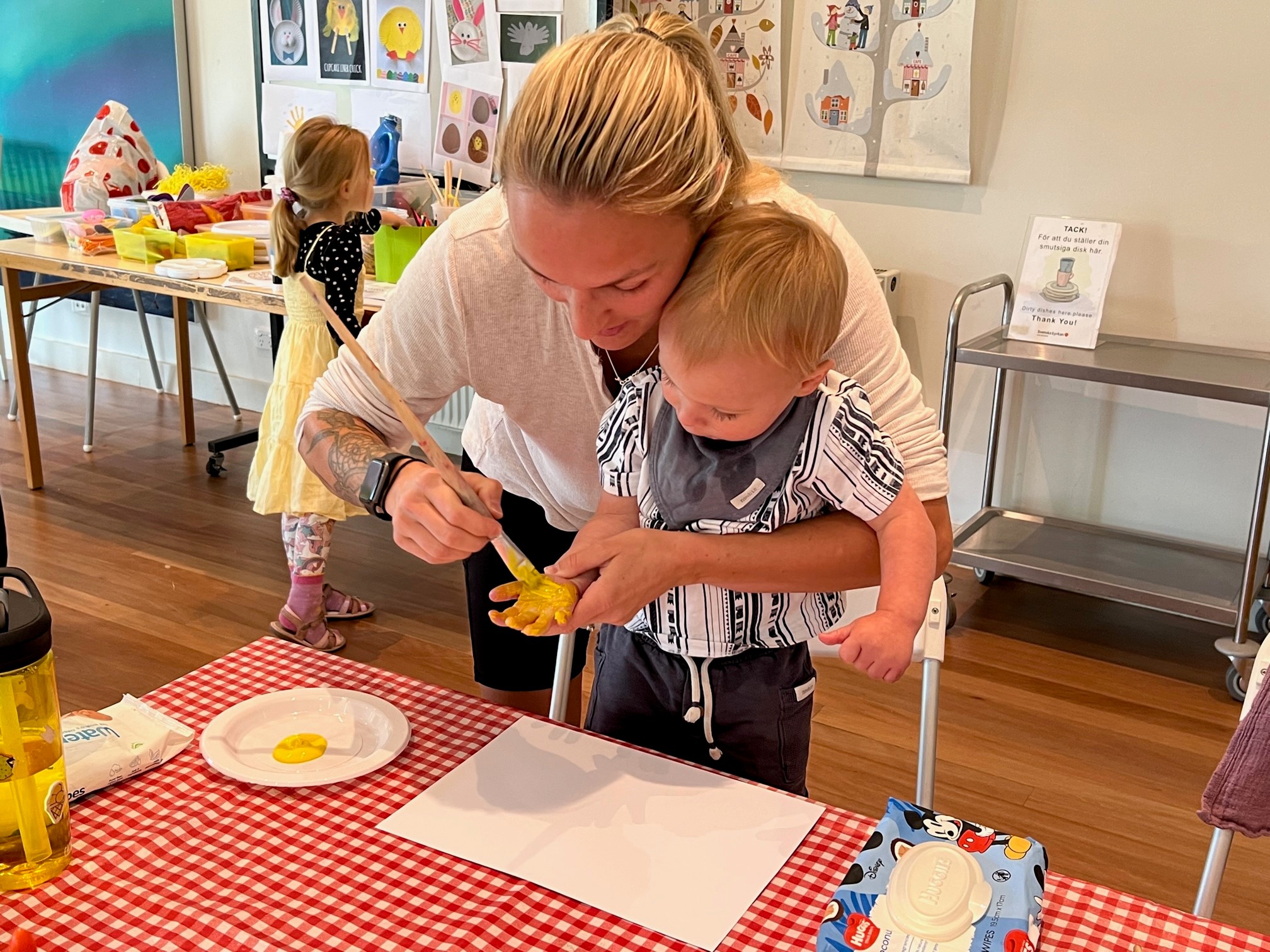 * Här kan du umgås med andra svenska barn och föräldrar för att fika, leka, måla, pyssla och mycket mer.