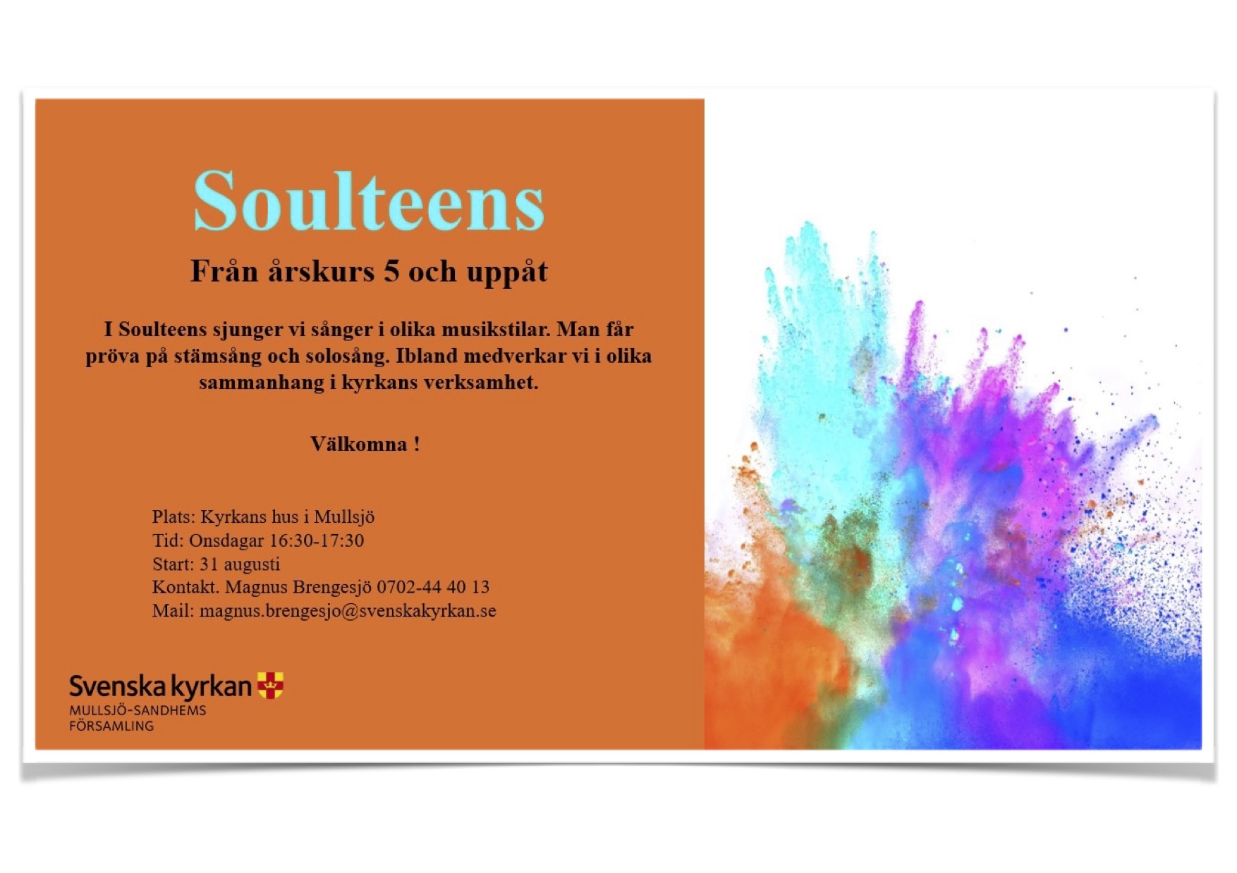 Kören Soulteens övar onsdagar kl.16.30-17.30 i Kyrkans hus, Mullsjö. Hoppas vi ses!!