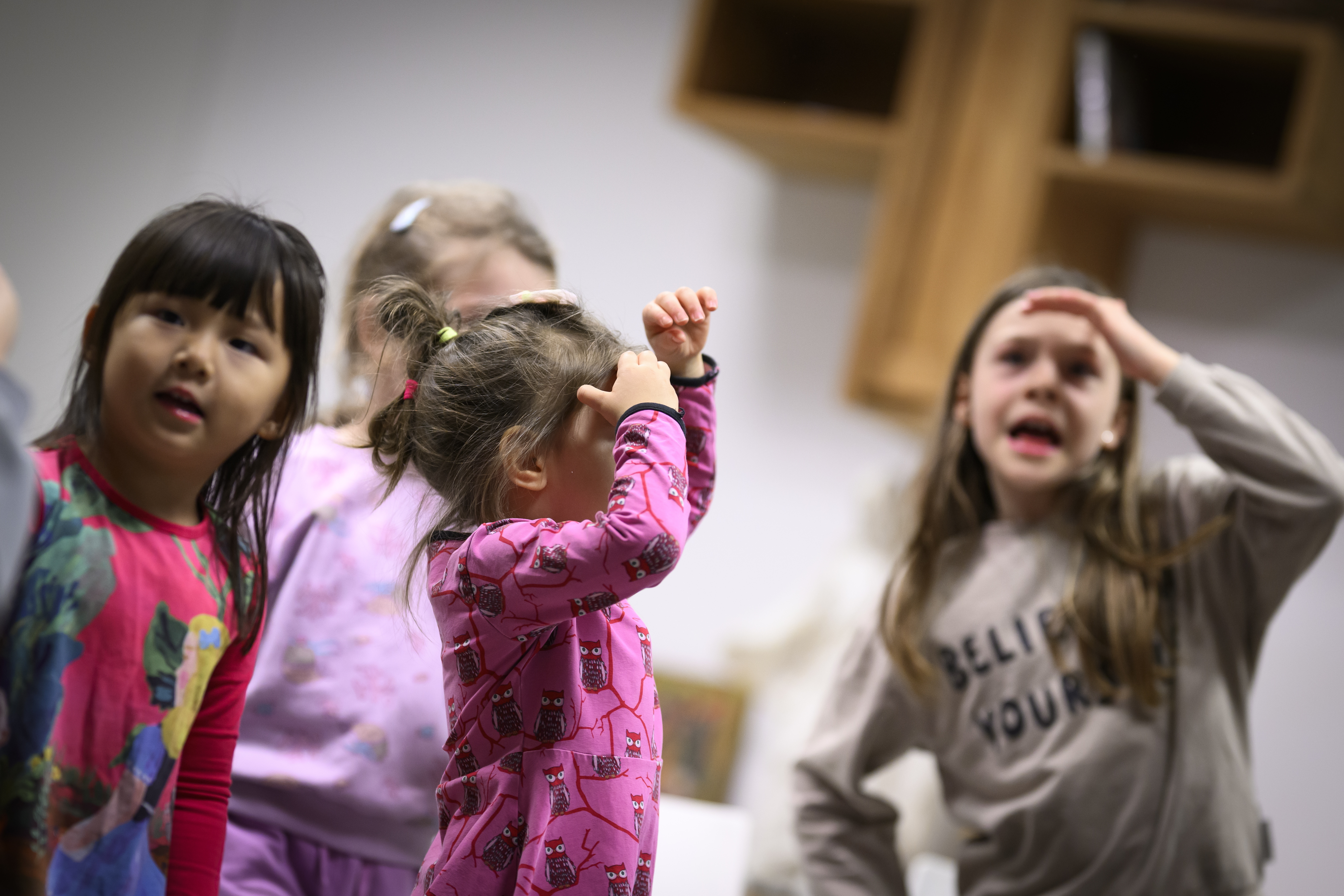 Hela församlingen är aktiv i gudstjänsten med små och storas olika moment. Barnen har möjlighet att få uppgifter och tillsammans formar vi en gudstjänst där gemenskap och delaktighet är ledord och hela livet får plats. Församlingens barngrupper inbjuds särskilt till gudstjänsten.
