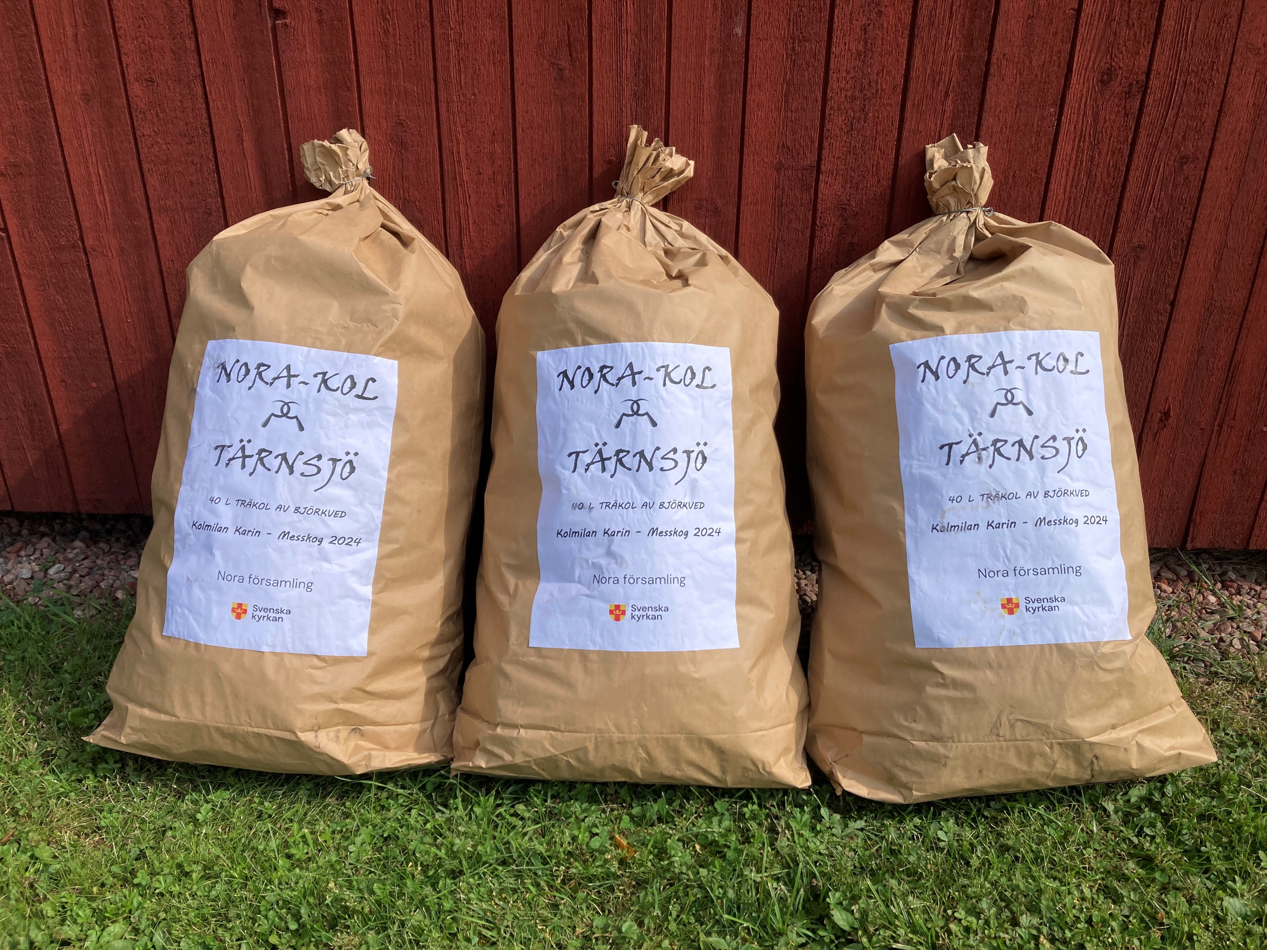 Nu finns den bästa grillkolen att köpa hos oss, Faster Veras café och Tärnsjö järnhandel för 300 kr/säck. Kolen kommer från kolmilan Karin som i sommar kolat på den gamla kolarplatsen i Messkog som ligger längs Kyrkstigen.