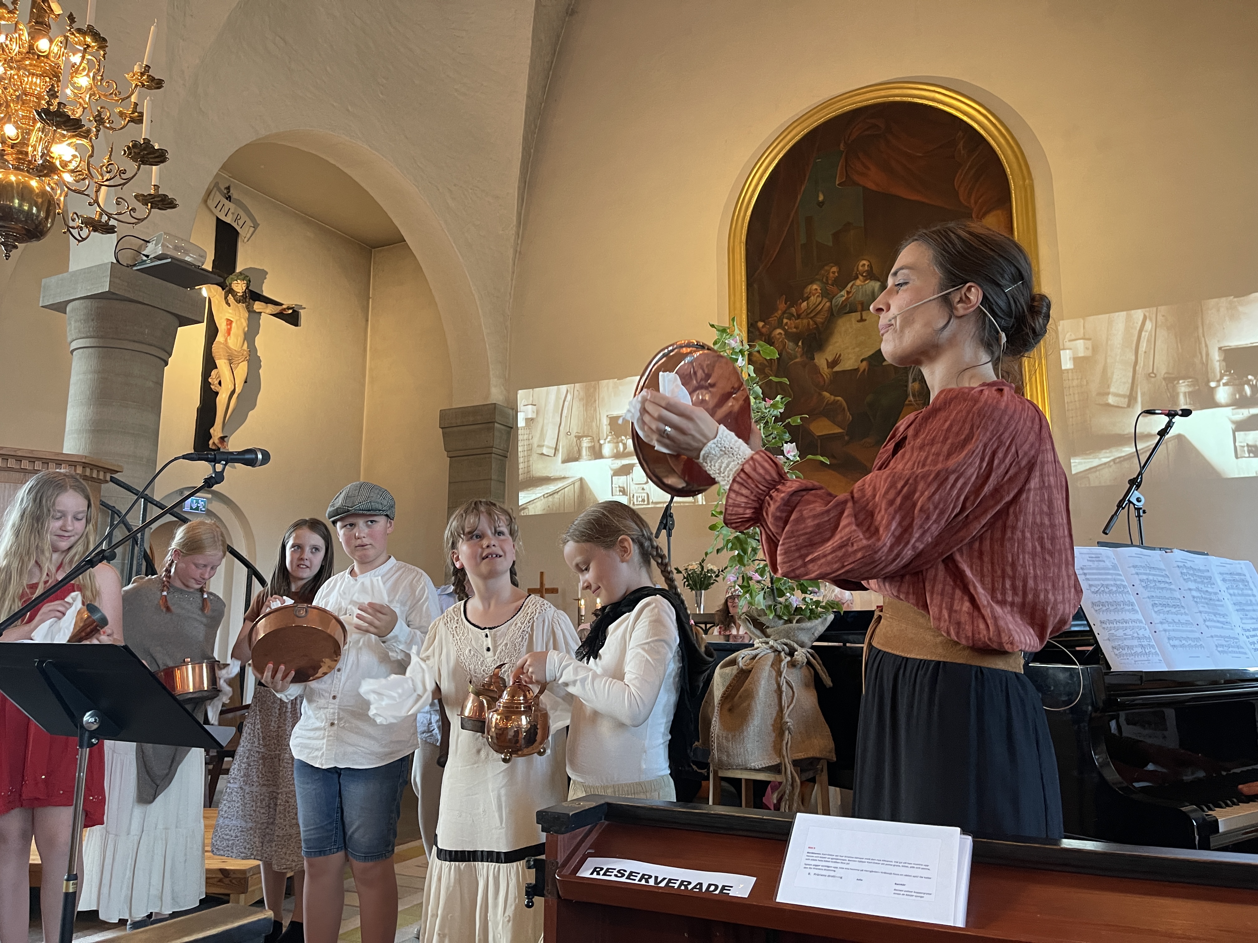 Vi sjunger, agerar och tillverkar rekvisita tillsammans. Fika hinner vi också med. Gruppen är för dig som går i 3:an-5:an.