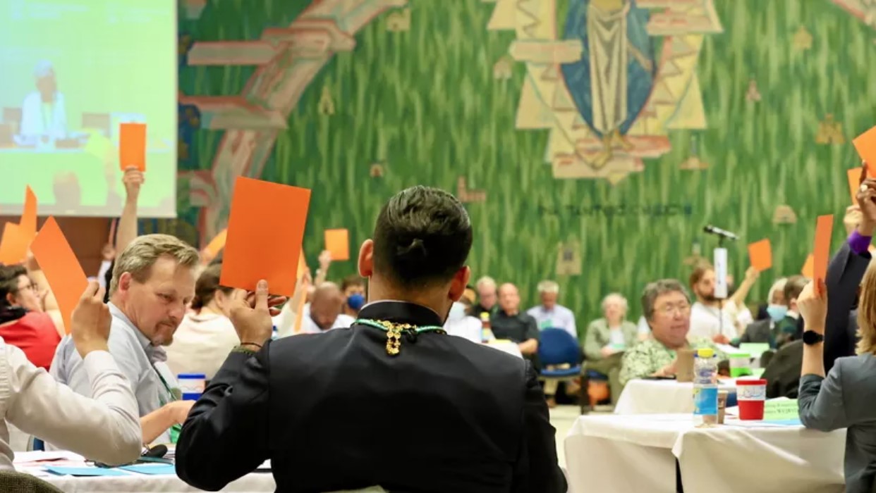 Det mångbottnade temat lämpar sig också mycket väl att formulera som en bön inför generalförsamlingen: Må Kristi kärlek driva oss till enhet och försoning.