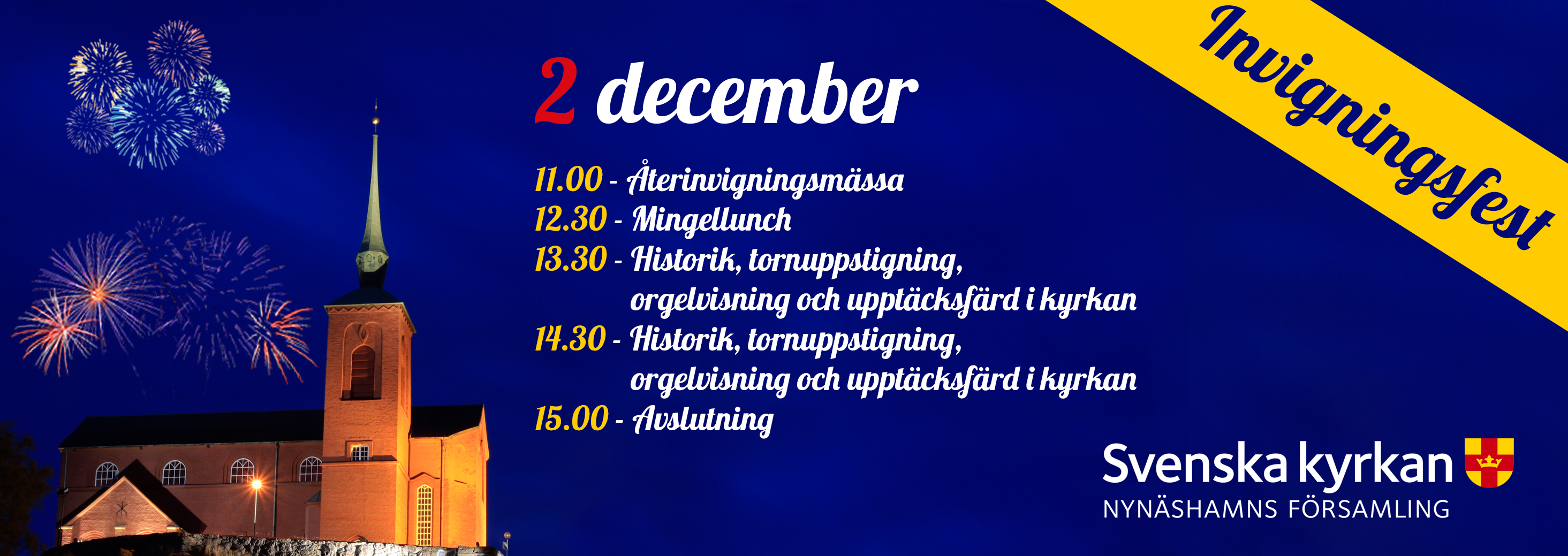 Sedan 9 april har kyrkan varit stängd för renovering och den 2 december är det äntligen dags att slå upp portarna för återinvigning. Varmt välkommen till invigningsfest!
