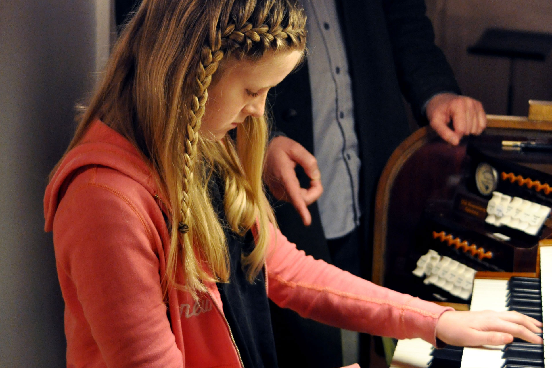 – Jag har spelat piano i flera år, säger Nellie. Ibland spelar jag också på kyrkans orgel, det är roligt.