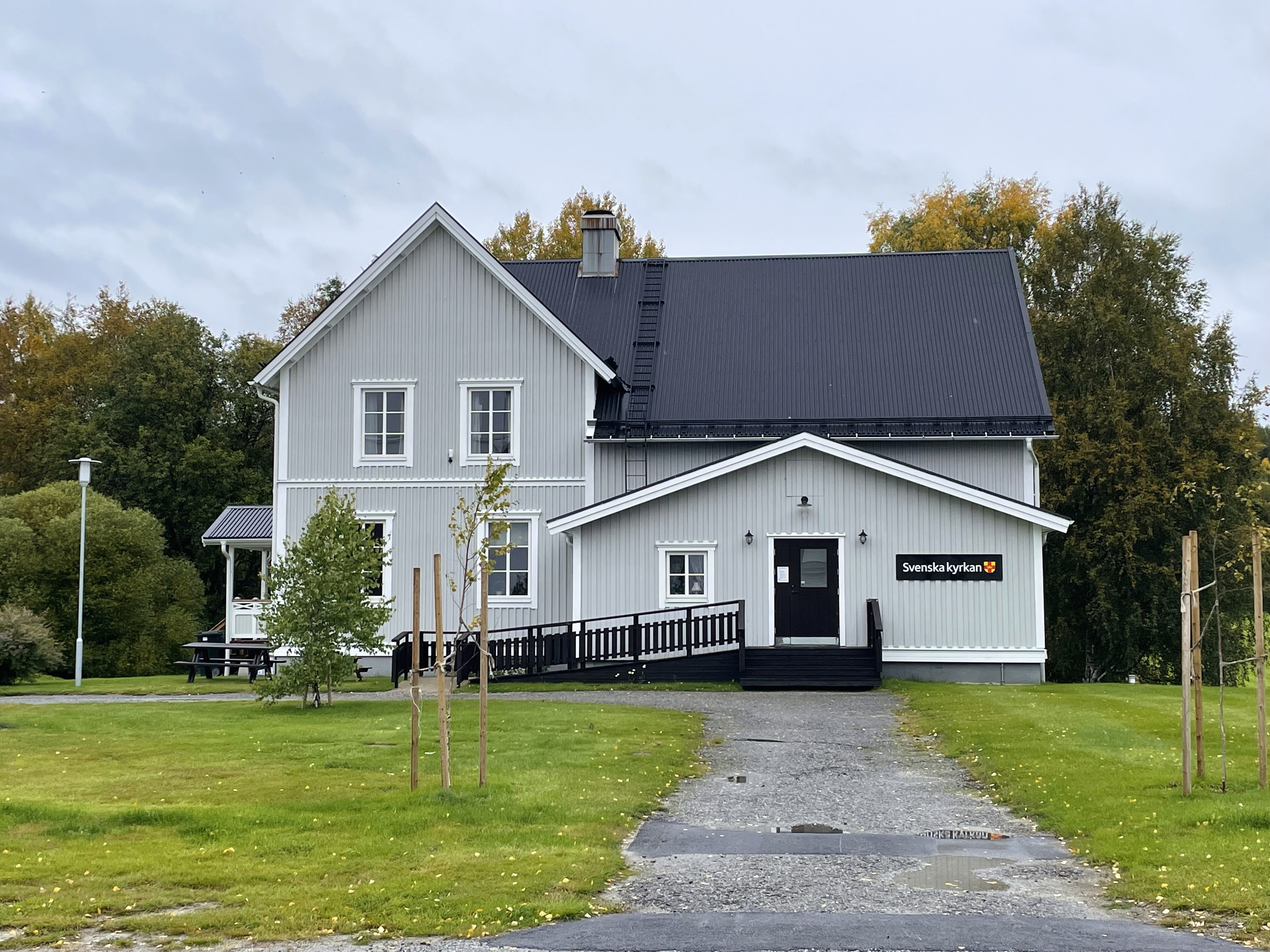 Skorpeds församlingshem är en vacker trävilla i en vit nyans som består av tre våningsplan.