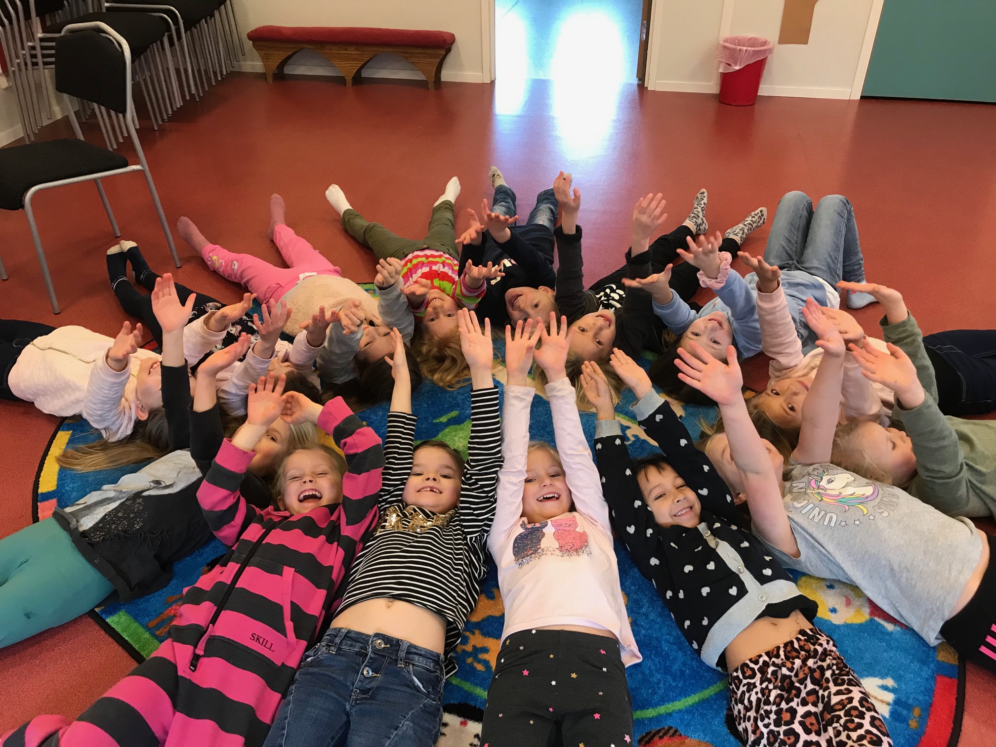 Vi sjunger rörelsesånger, leker musiklekar, sjunger sånger för livet och kyrksånger.
