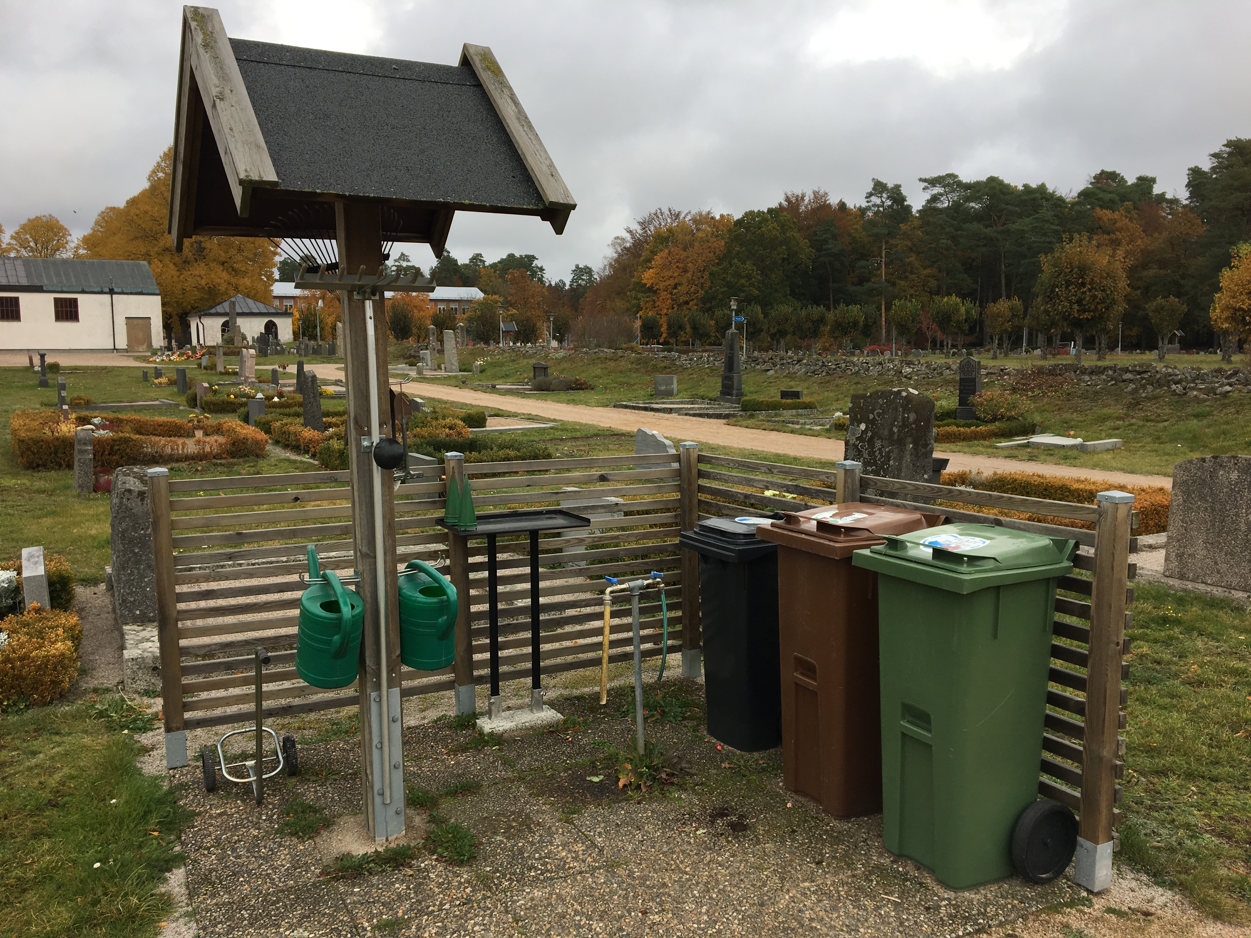 Våra servicestationer är till för att underlätta för våra besökare och för att det ska se snyggt och trevligt ut på vår kyrkogård.