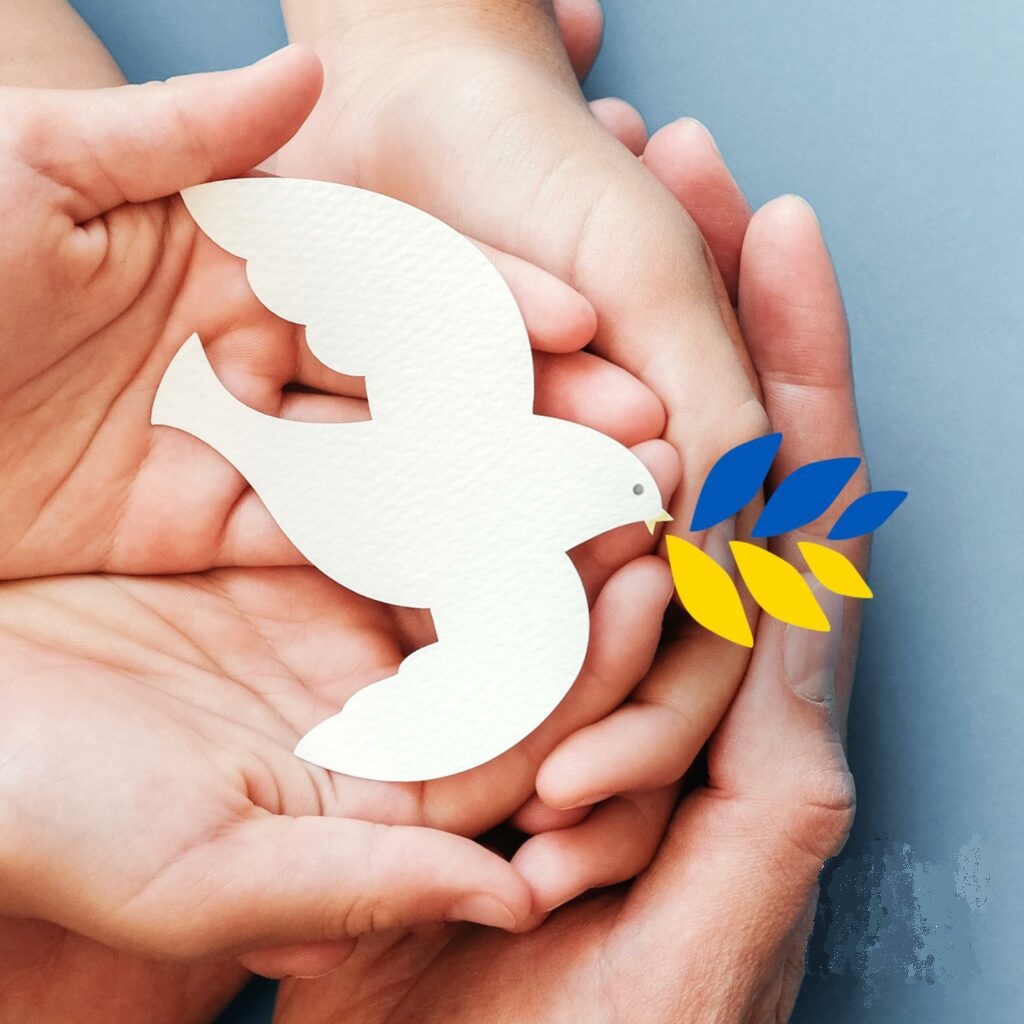 Genom att måla, tända ljus, skriva lappar mm uttrycker vi vår bön för Ukraina.