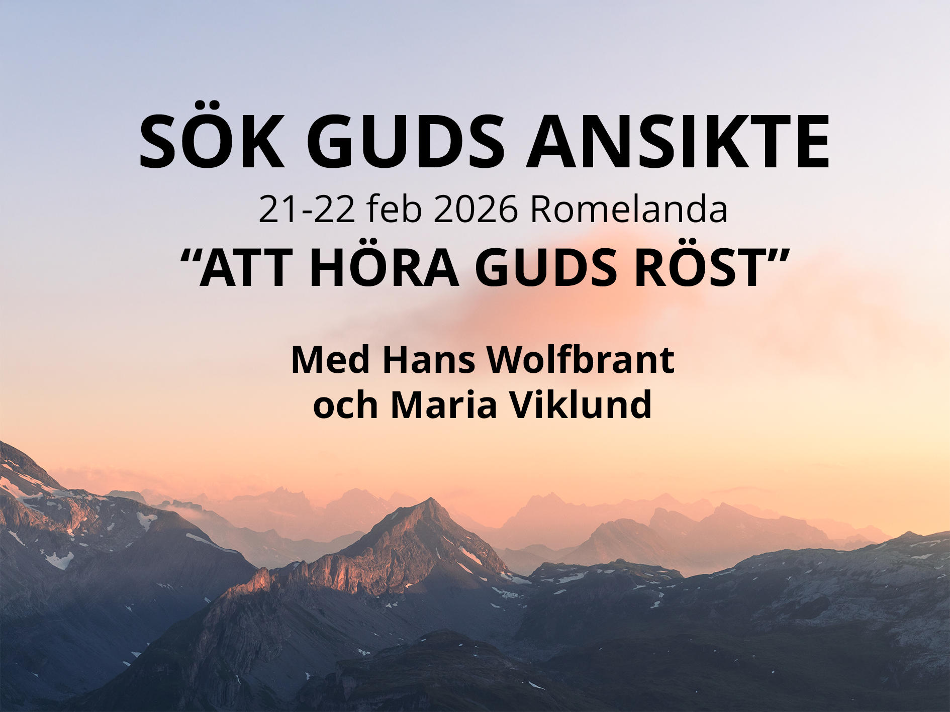 Vårens ”Sök Guds ansikte” har som tema ”Att höra Guds röst”. Inbjudna gästtalare är Hans Wolfbrandt, kyrkoherde i Lysekils pastorat och Maria Viklund, barn- och familjeledare i S:t Clara kyrka i Stockholm
