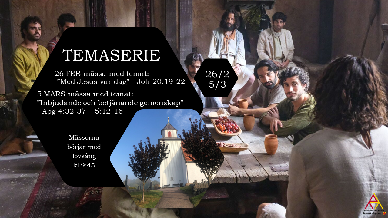 I Joh 20:19-22 läser vi om när Jesus på påskdagen visar sig för lärjungarna. Han hälsar dem med att ge dem frid, något vi alla kan ta emot. Jesus säger också ”som Fadern sänt mig sänder jag er” och sänder här ut lärjungarna att fortsätta det Jesus påbörjat. Han lämnar den till viss del, men är närvarande för alltid genom den Helige Ande. Så avslutas det också när Jesus säger ”ta emot Helig Ande”. Jesus vill vara med oss varje dag, vi bjuds att ta emot från honom och ge vidare till andra.