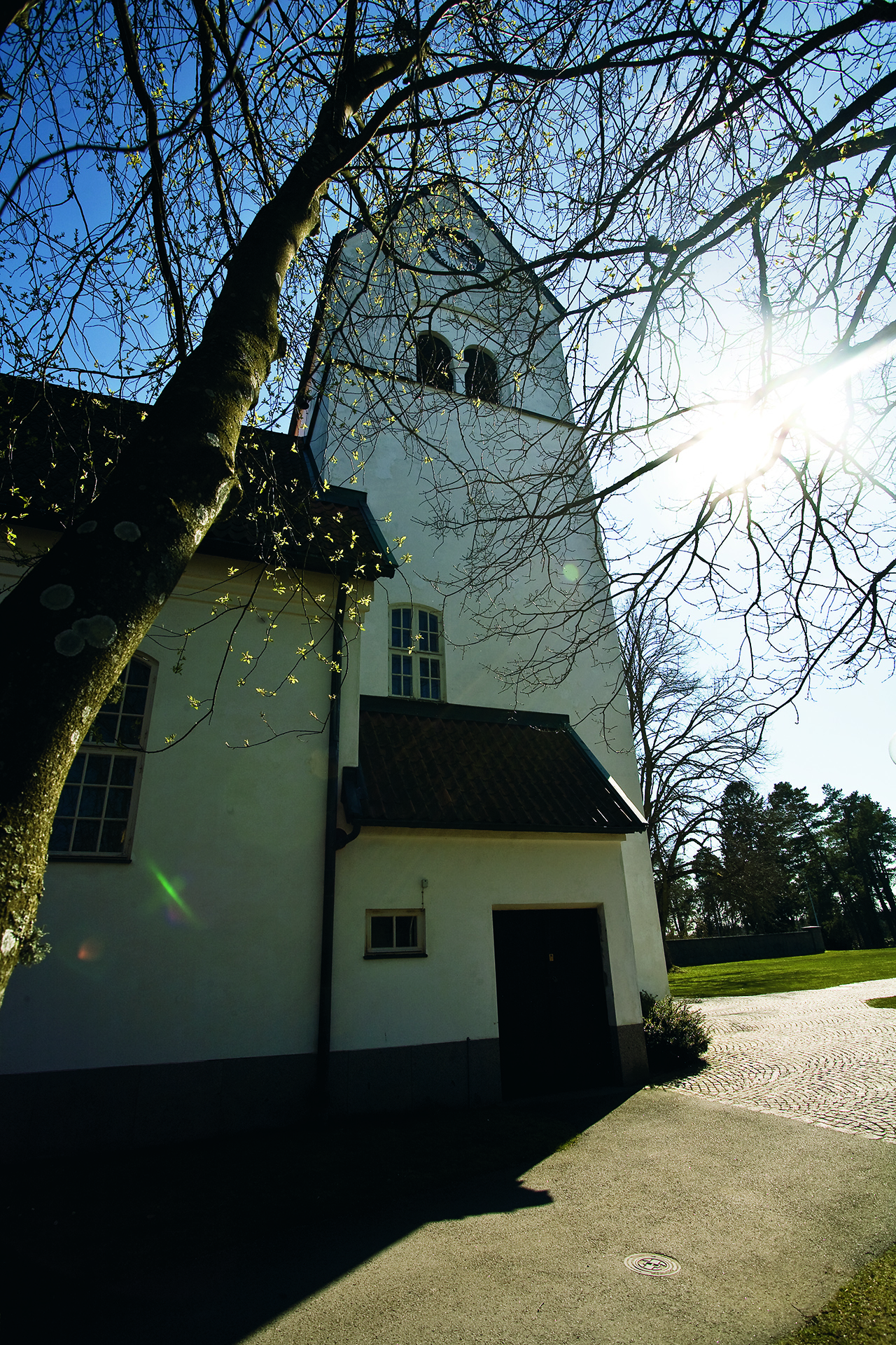 ... i det yttre mycket gemensamt med sin jämngamla systerkyrka i Saxemara, men måtten är väsentligt större tilltagna. Den består av långhus utan markerat kor, västtorn och vidbyggd sakristia i norr, allt murat i tegel på granitsockel och med vitkalkad slätputs. På de ganska branta taken ligger tegelpannor. Tornets avslutning med ett vanligt sadeltak visar på arkitektens inspiration av moderkyrkan i Ronneby, liksom ljudluckornas placering i nischer på tornfasaden och, antaligen, den åt norr utbyggda sakristian.