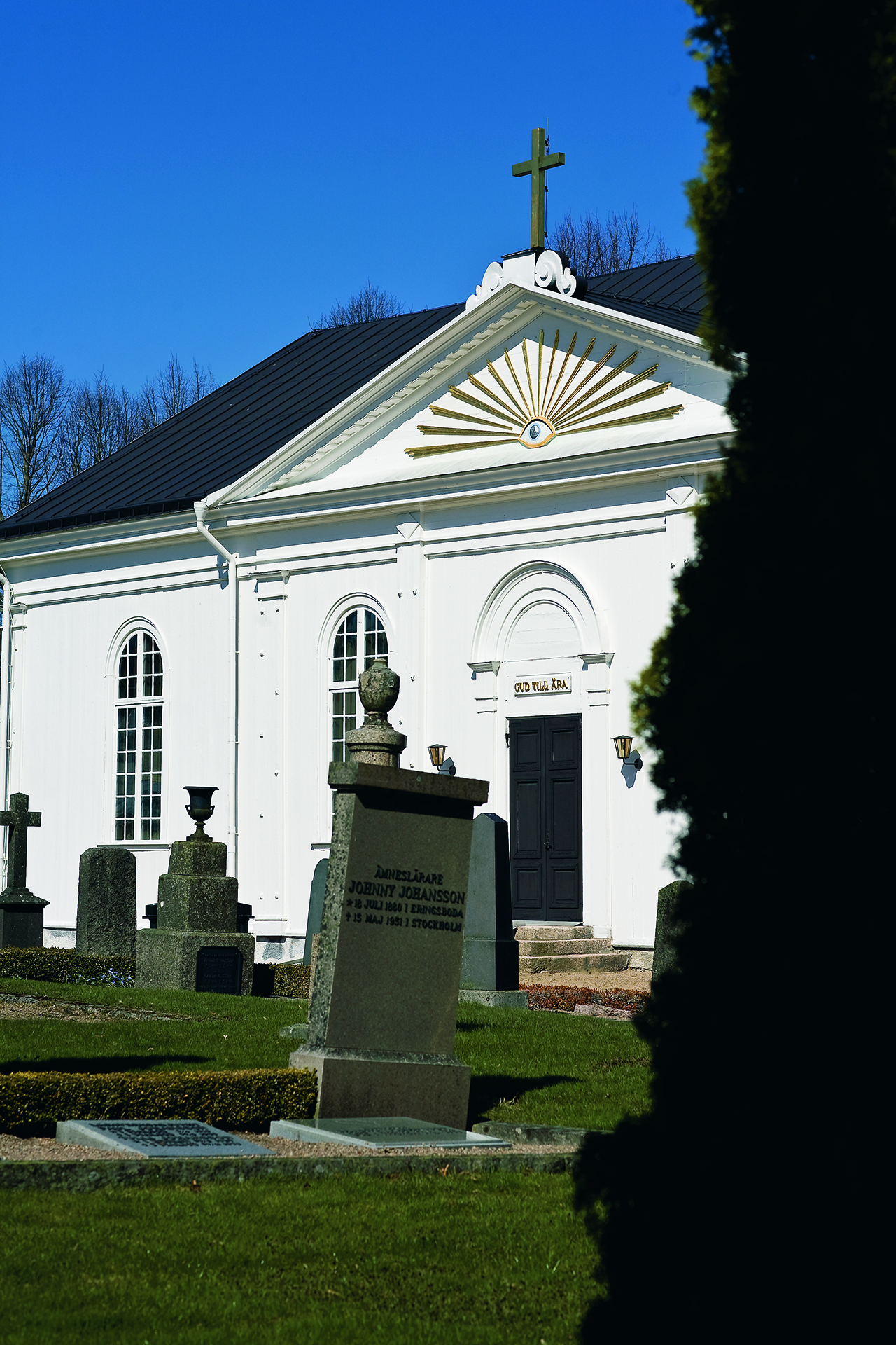 ...1848 och var som nu en timmerbyggnad, 26,7 m lång och 13,3 m bred, väsentligt större än det kapell den ersatte. Invändigt är den en rymlig, ljus predikosal med tunnvälvt innertak och orgelläktare och med sakristia i norr. Utvändigt imiterar den, som alla empirehus i trä, en putsad stenbyggnad med sin spåntade slätpanel, sina breda pilastrar och sitt kraftiga listverk. Den skicklige arkitekten Johan Adolf Hawerman har med de knappa resurser som fanns skapat en välproportionerad byggnad med fina detaljer. Överintendentsämbetet godkände ytterst ogärna nya träkyrkor, men som verksam vid ämbetet kan Hawerman ha hjälpt till med tillståndet och kanske ansträngt sig lite extra med illusionen av en stenbyggnad.