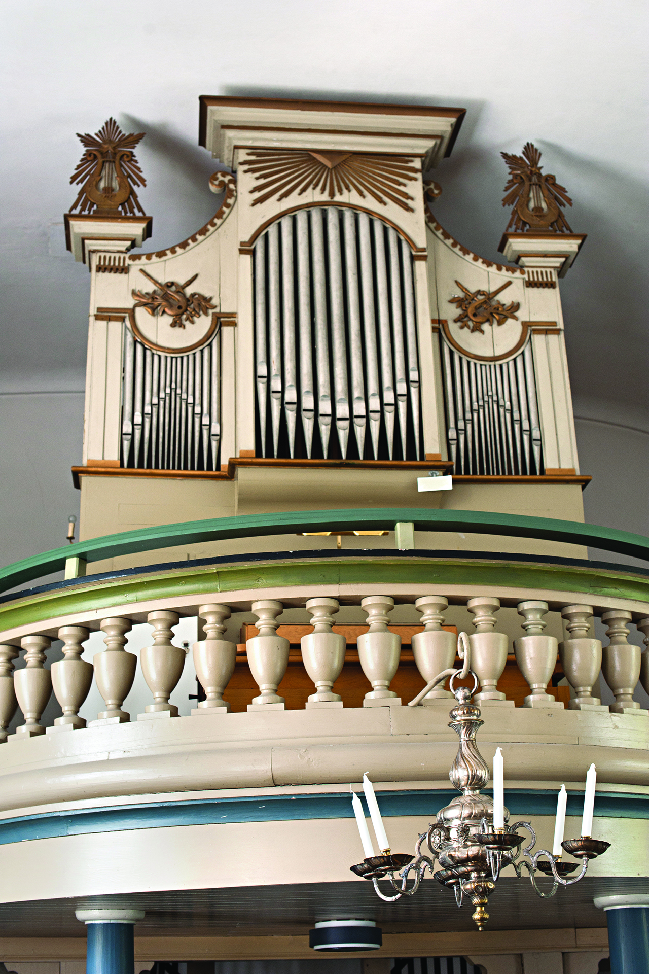 ... 1834 (enl annan uppgift 1836) skänktes till kyrkan och vars fasad ännu pryder läktaren, var byggd här i Hjortsberga av instrumentmakaren Per Jönsson. Hans son Andreas Jönsson, senare med tillnamnet Åberg, deltog som lärling i detta och andra orgelbyggen och blev senare själv välkänd som mästare till åtminstone sexton kyrkorglar, därav tolv i blekingska kyrkor. Bak fasaden döljer sig idag ett orgelverk av Mårtensson i Lund från 1976.