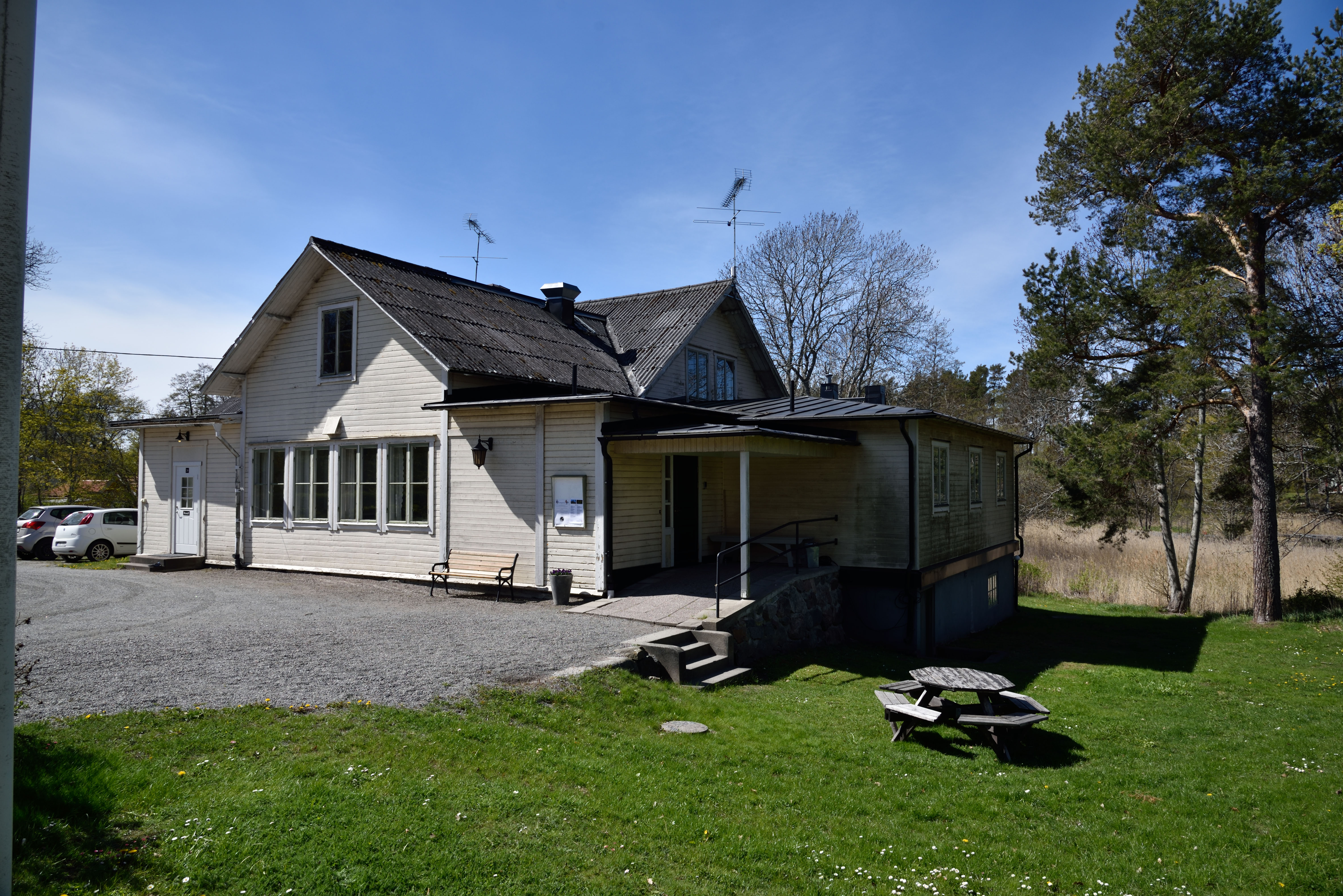Blidö sockenstuga ligger bredvid till Blidö kyrka.