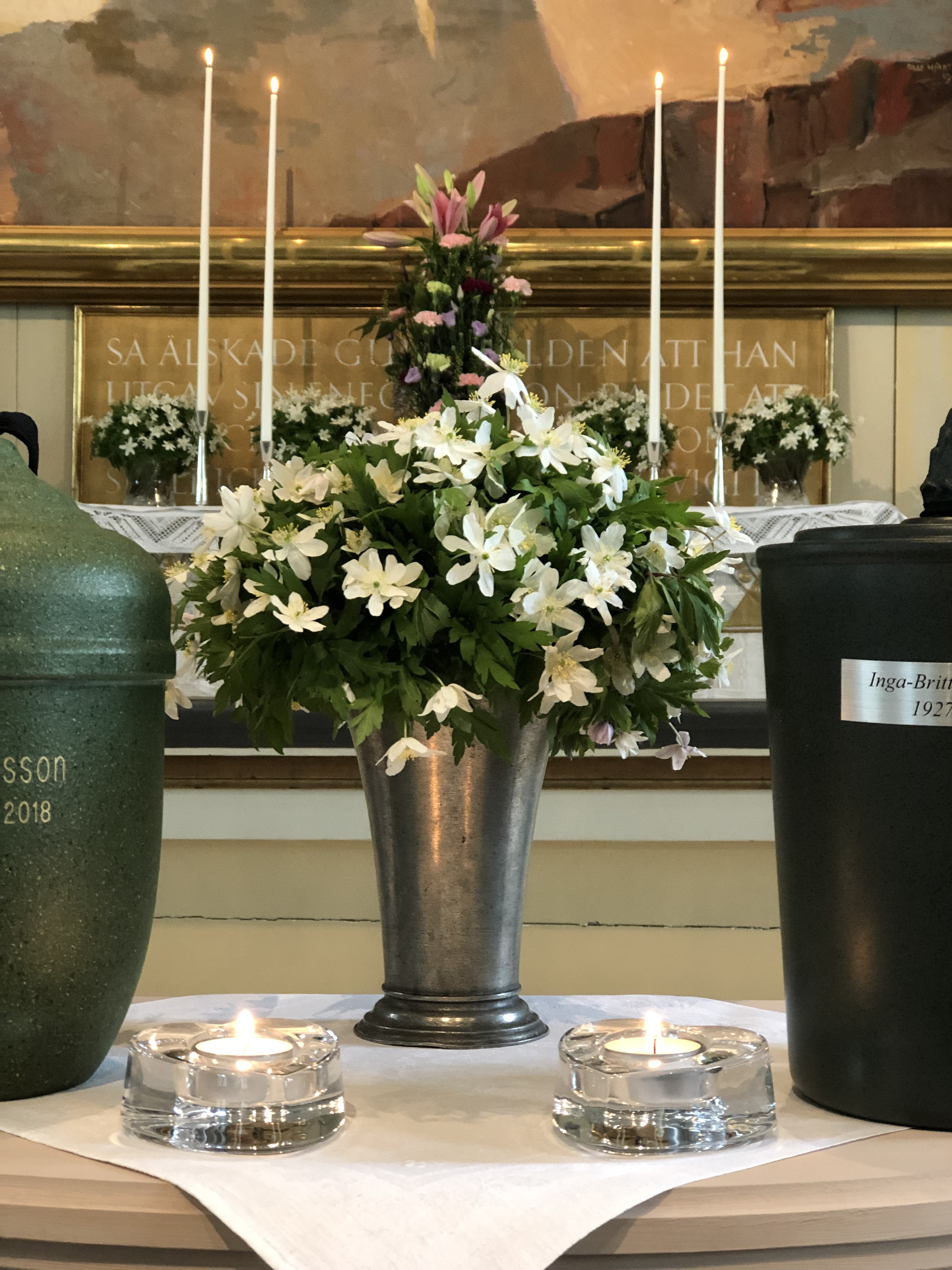 Önskar man att en präst deltar vid urnnedsättningen, kontaktar du pastorsexpeditionen för att boka en tid, tel: 026-25 30 53