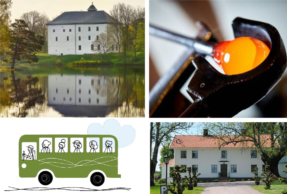 Glasets hus i Limmared. Vi får se glasblåsning. Museum, försäljning.