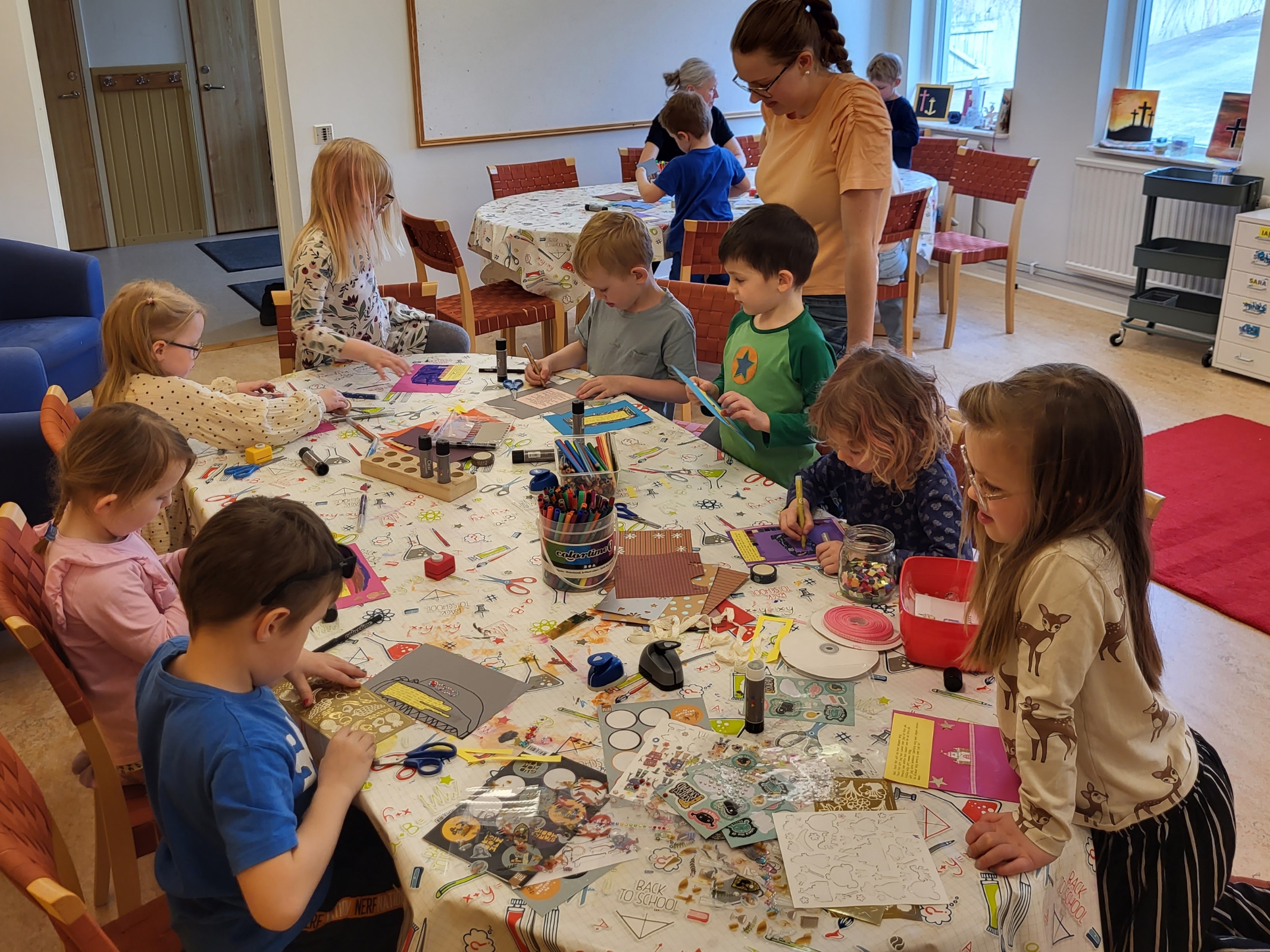 Kyrkans barntimmar är för barn födda 2020 & 2021. Vi pysslar, leker, sjunger, äter mellis, ber, pratar och har samling kring bibelberättelser.