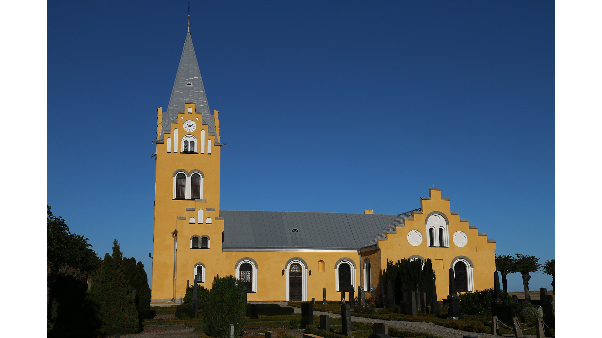 Kyrkan är byggd i romansk stil, och de äldsta delen är från 1100-talet. Valven slogs på 1400-talet och tornet byggdes då. Tornet hade från början trappgavlar, men fick sitt nuvarande utseende i slutet av 1800-talet. Dopfunten är från 1100-talet och altaruppsatsen från 1735. En märklig klenod är ekskulturen av S:ta Anna, Maria och Jesusbarnet. Den härrör från 1400-talet. 1800-talets stora bidrag till interiören är det votivskepp som hänger i långhuset, skänkt dit av församlingsbor.