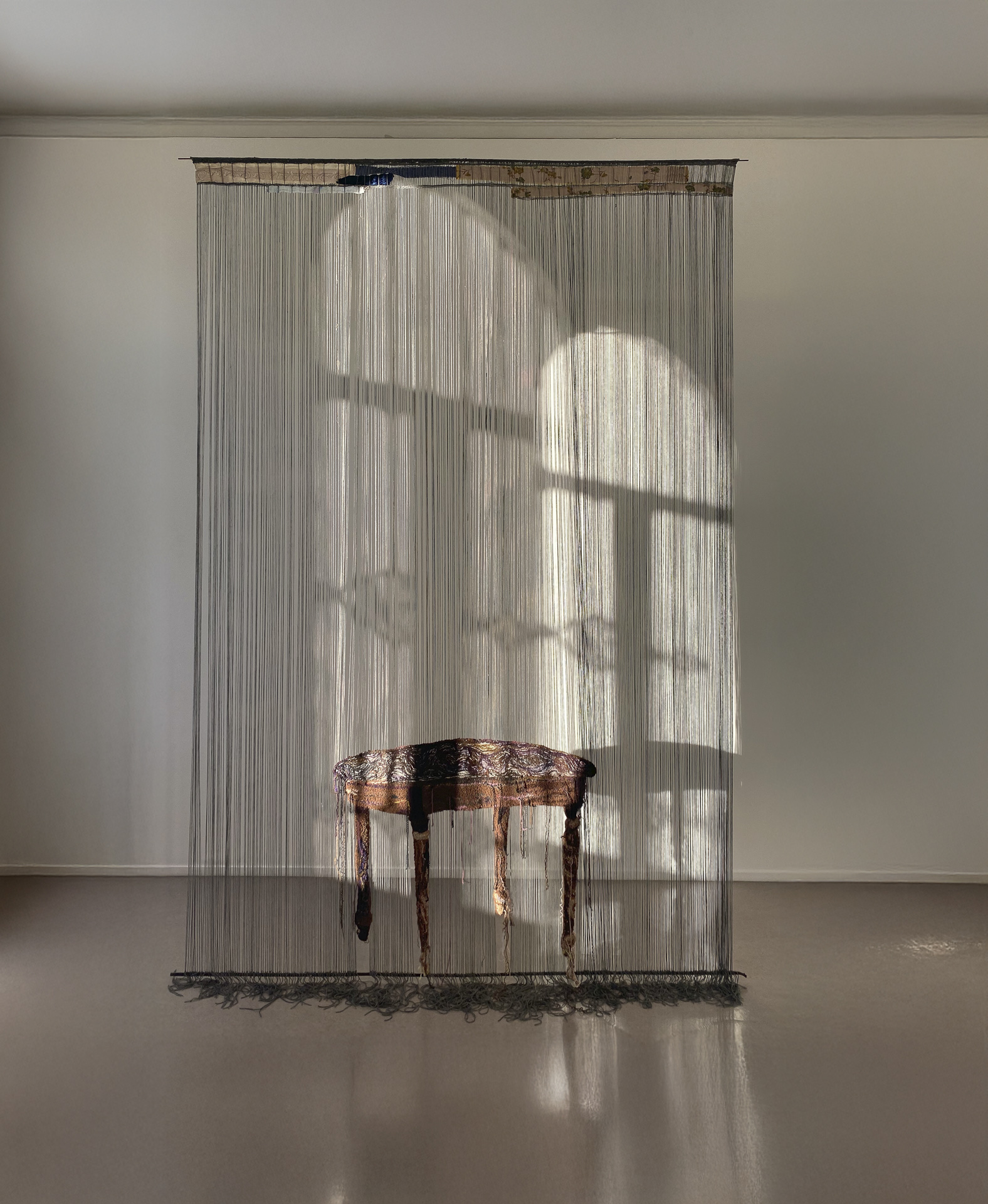 – Bland avlagda, slitna textilier – eller stickningar som aldrig blev fullföljda – söker jag mina konstnärliga material, berättar Kari Steihaug. Textilier som inte längre används får nytt liv, och den historia som tyget eller stickningen i sig bär, intresserar mig. Eftersom textilier ofta är knutna till människors kroppar och hem, förs historien om livet, om själva existensen, in i ett nytt sammanhang.