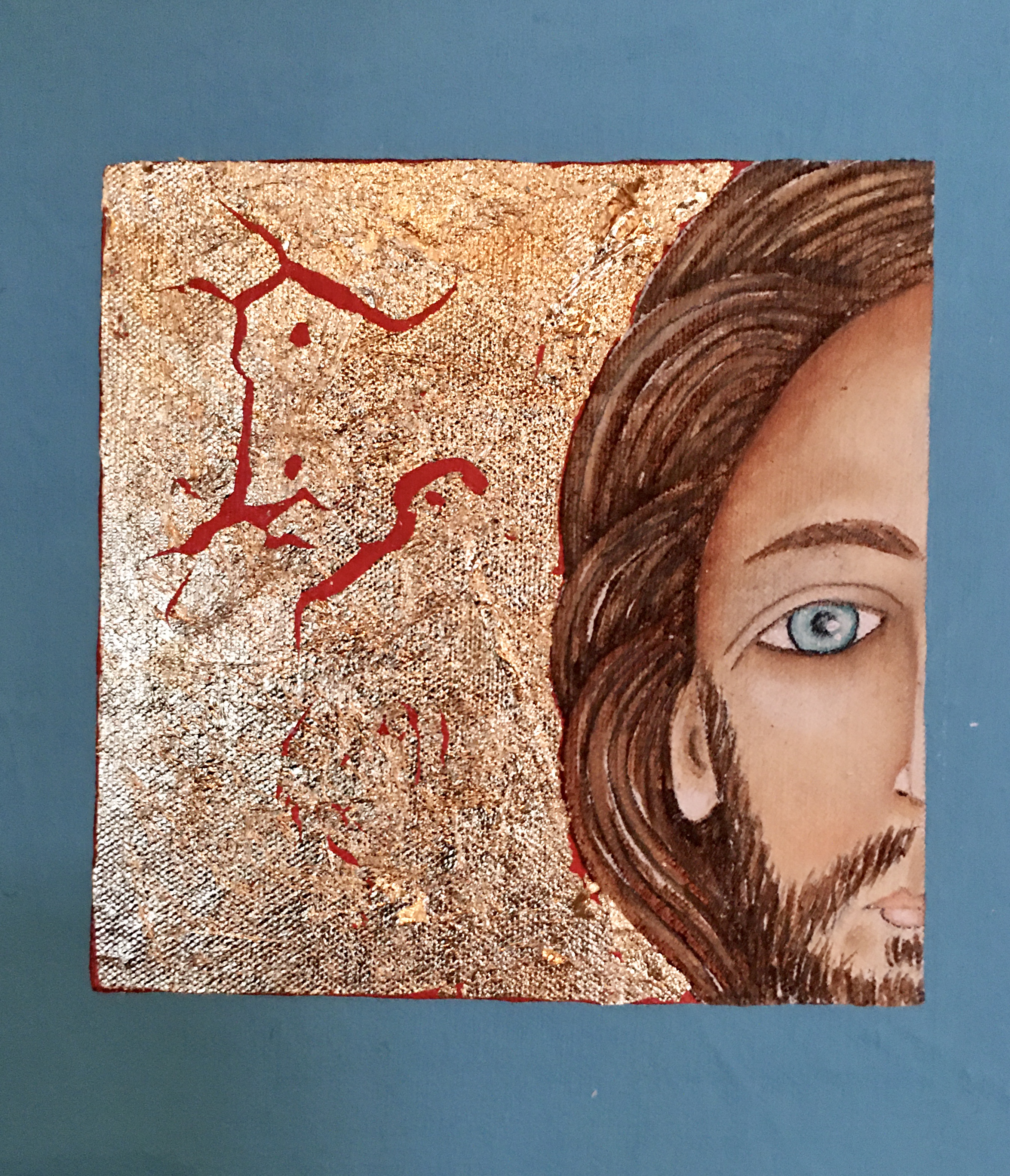 Ikoninspirerade bilder – slagmetall, slitna presenningar, form, känsla och färger från ikonernas värld. Men jag målar inte ikoner. Det känns angeläget att säga det tydligt. Jag är på tok för otrogen och experimentell i mitt målande för att platsa i ikonmålarnas skara. Däremot är jag sedan ungdom fascinerad av ikonmåleriet. Den östliga kyrkans rika bildspråk är inspirerande att ta spjärn emot. Jag tar till mig en del av det klassiska ikonmåleriets lagbundenhet men bearbetar det genom att bryta upp, utelämna, möblera om. Jag lånar lite här och där, vrider till det, lyfter fram detaljer och strävar mot det enkla. Syftet är att skapa en vacker bildbrygd med läkande och lugnande inverkan på människor.