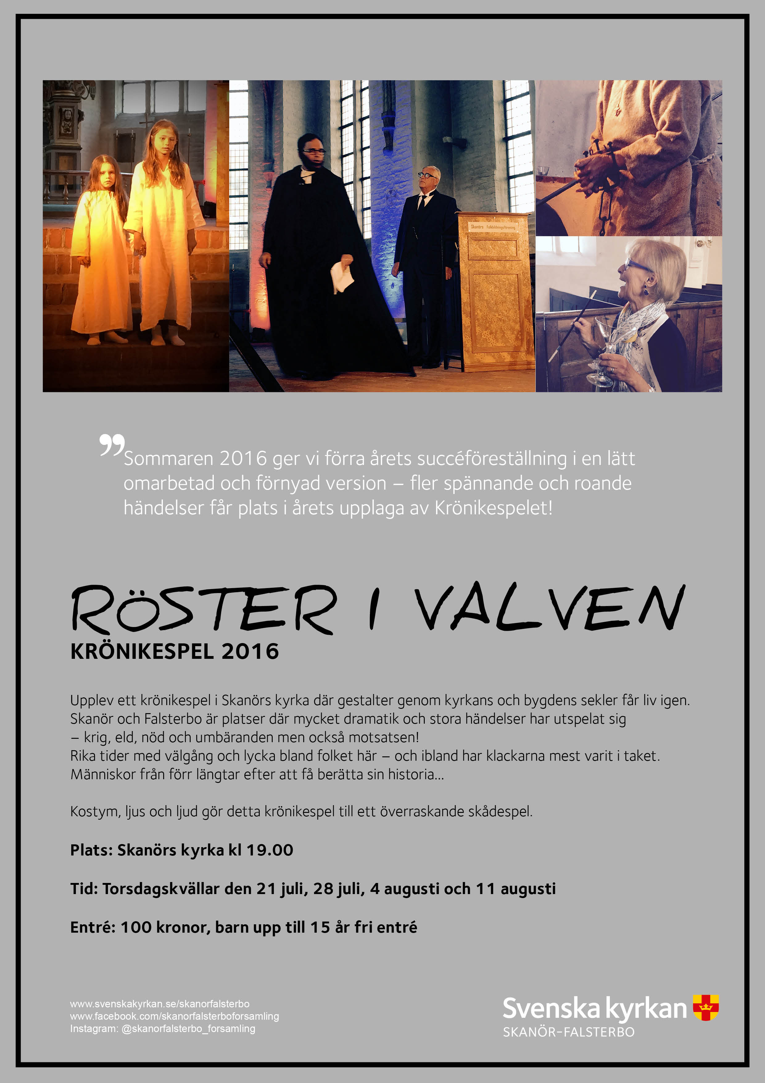 Sommaren 2016 ger vi förra årets succéföreställning i en lätt omarbetad och förnyad version – fler spännande och roande händelser får plats i årets upplaga av Krönikespelet!