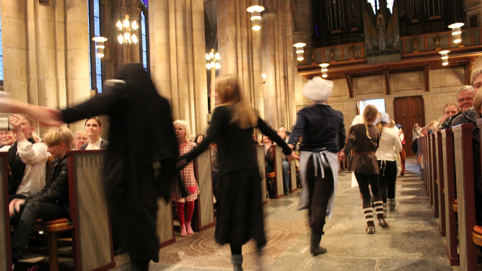 Under terminen medverkar vi i Gudstjänster, bl. a tillsammans med ungdomskören och deltar i domkyrkans Luciakonsert tillsammans med barn- ungdoms- och domkyrkokörerna.