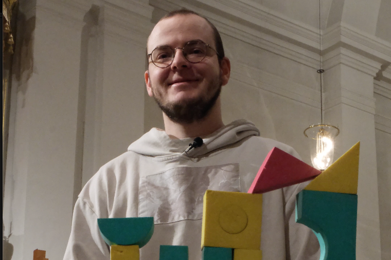 Noah Lööf är vikarierande församlingspedagog i Skellefteå Landsförsamling. Under helgmålsbönen hör vi honom också spela piano till psalmen ”Ett litet barn av Davids hus”.