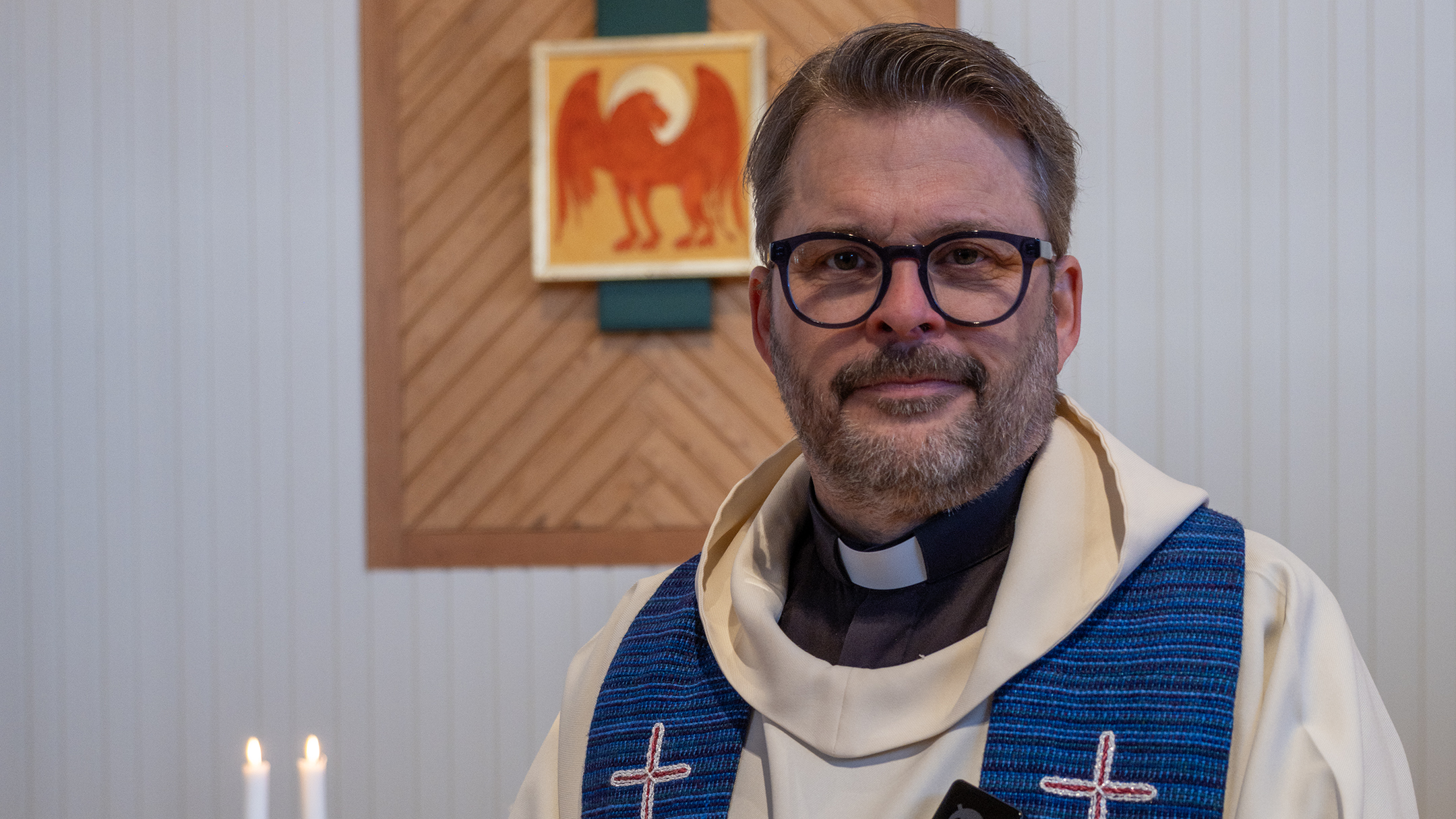 Jörgen Klingstedt är präst Sankt Olovs församling med huvudsakling placering i Morö Backe kyrka. Vi får sång av arbetslaget, Jörgen flankerad av Emma Lundström, församlingspedagog och Amanda Dahlström, kantor (som också spelar orgel). Musiken är en Taizésång - Ät mitt bröd (1989).