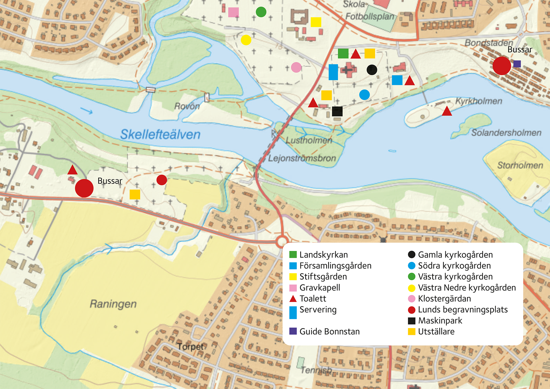 Ca ytterligare 6 min över Lejonströmsbron till serveringen vid vänstra entrén till Landskyrkan.