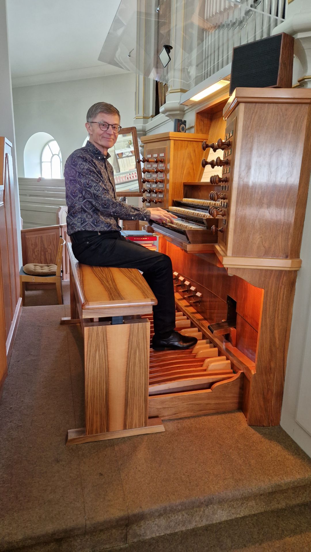 Martin spelar på kyrkans två orglar, stora läktarorgeln och lilla kororgeln samt flygeln. Musik av bland annat Mendelsohn och Bach (preludium i B-moll), samt en del svensk pianolyrik av Harald Fryklöf och Dag Wirén.