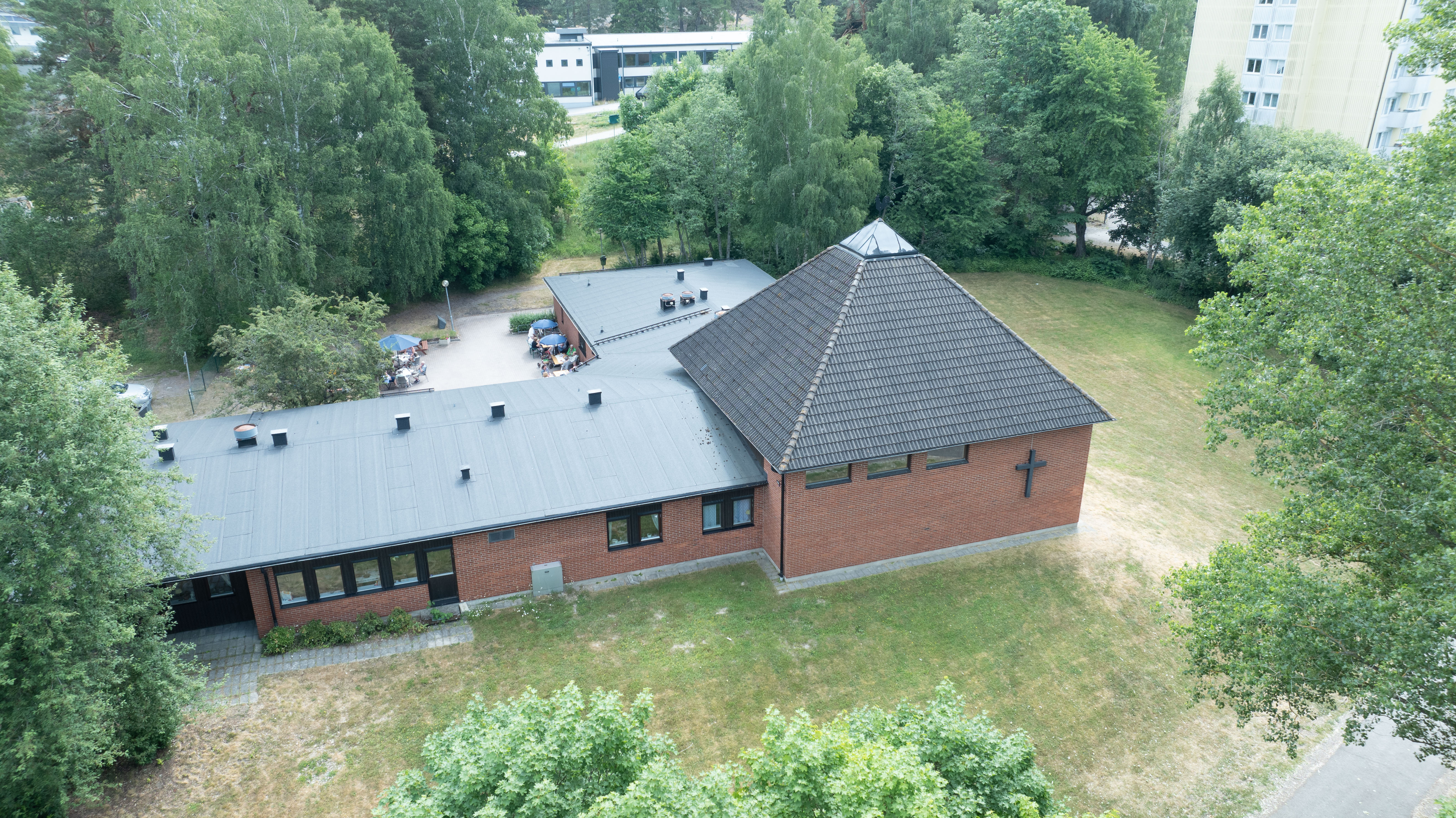 I stadsdelen Brunnsäng ligger den varmt tegelröda kyrkan som invigdes 1982.
