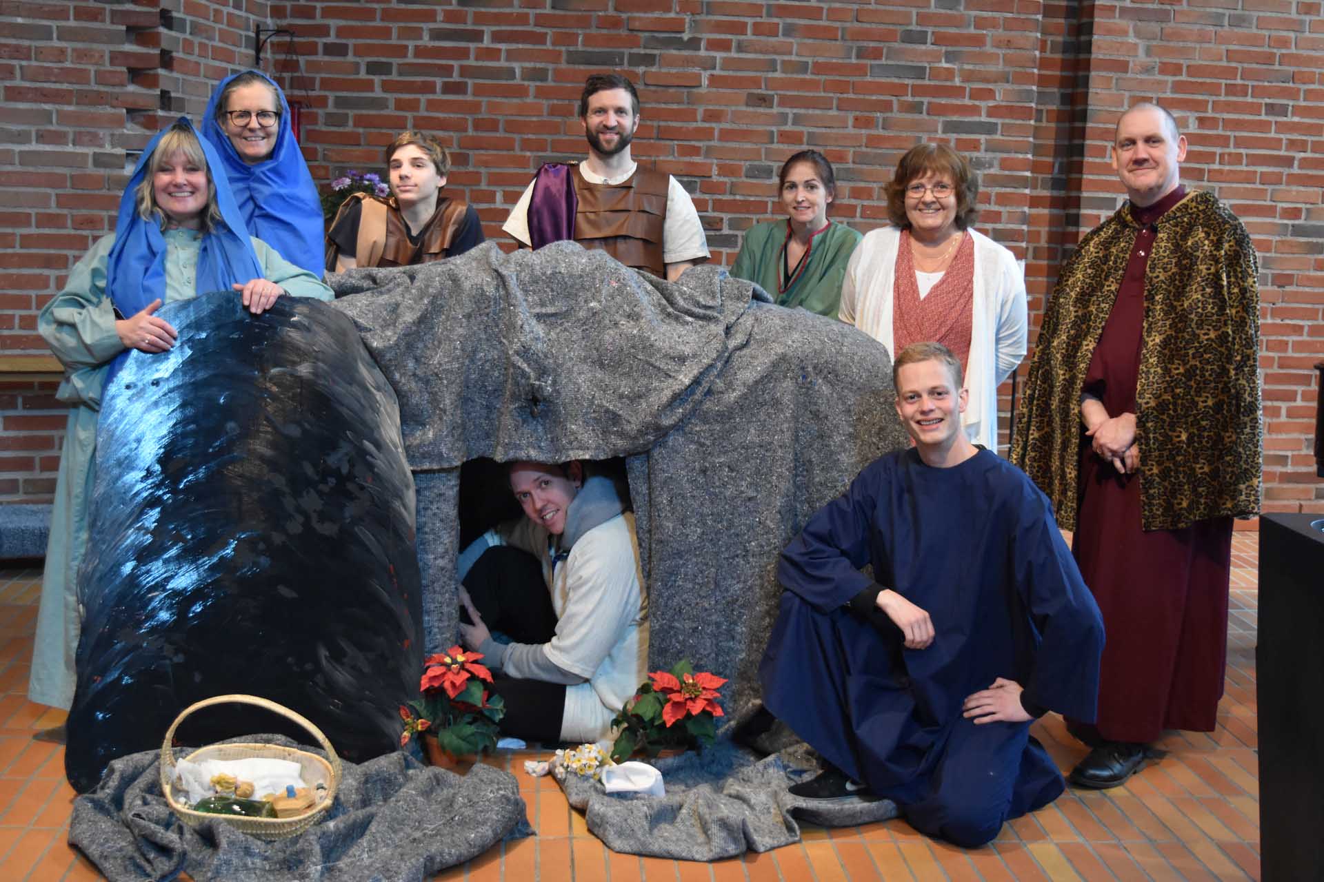 Varje påsk har vi påskvandringar i olika kyrkor för skolelever i Sollentuna kommun. Man får följa påskens berättelse med hjälp av skådespelare, från att Jesus dör och uppstår.