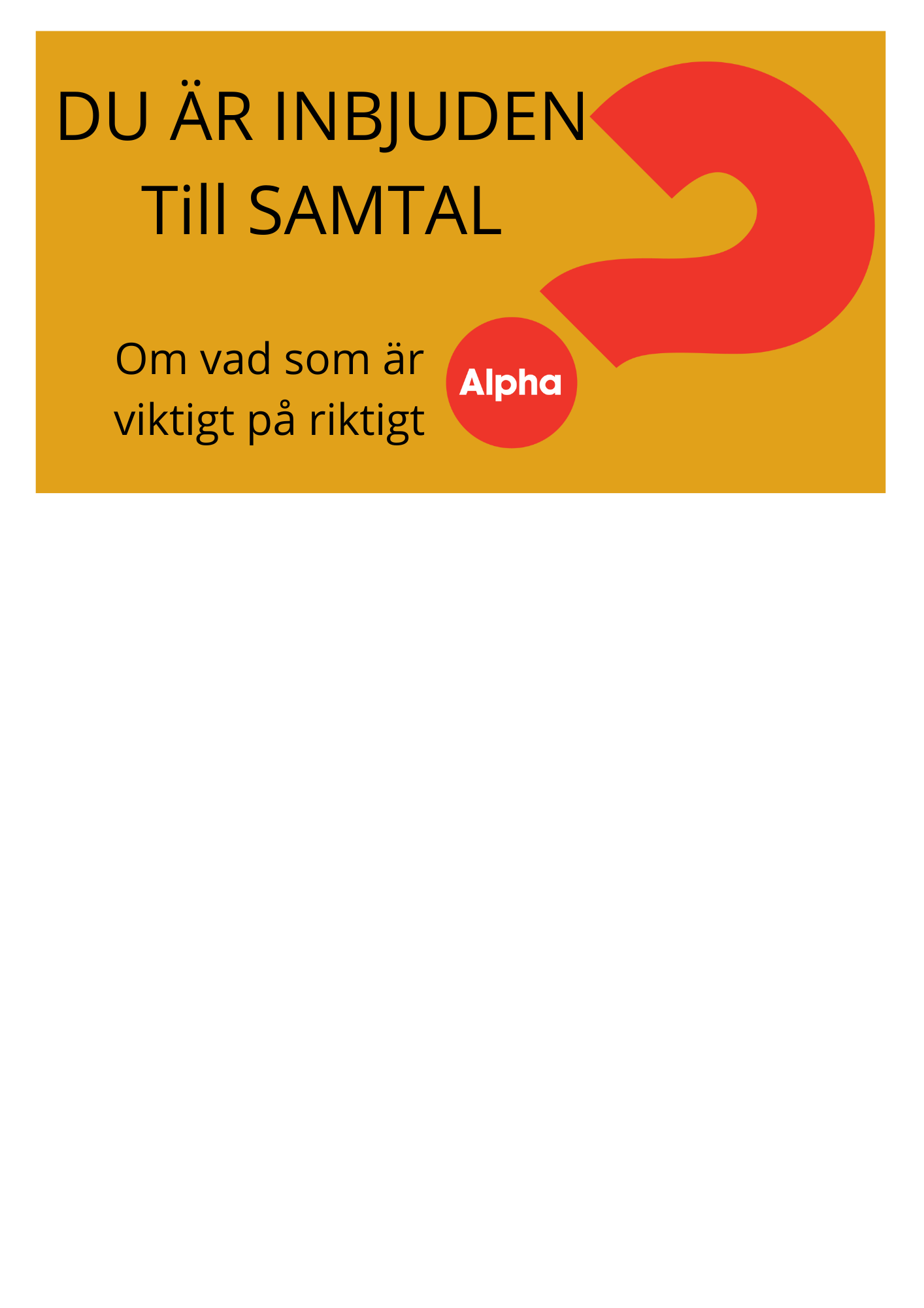 Det startar med god mat, följt av en film/föredrag som är gjord för att uppmuntra till samtal om tro i mindre grupper och som leds av en samtalsledare. I samtalsgruppen är det dina funderingar och reflektioner som är viktiga.